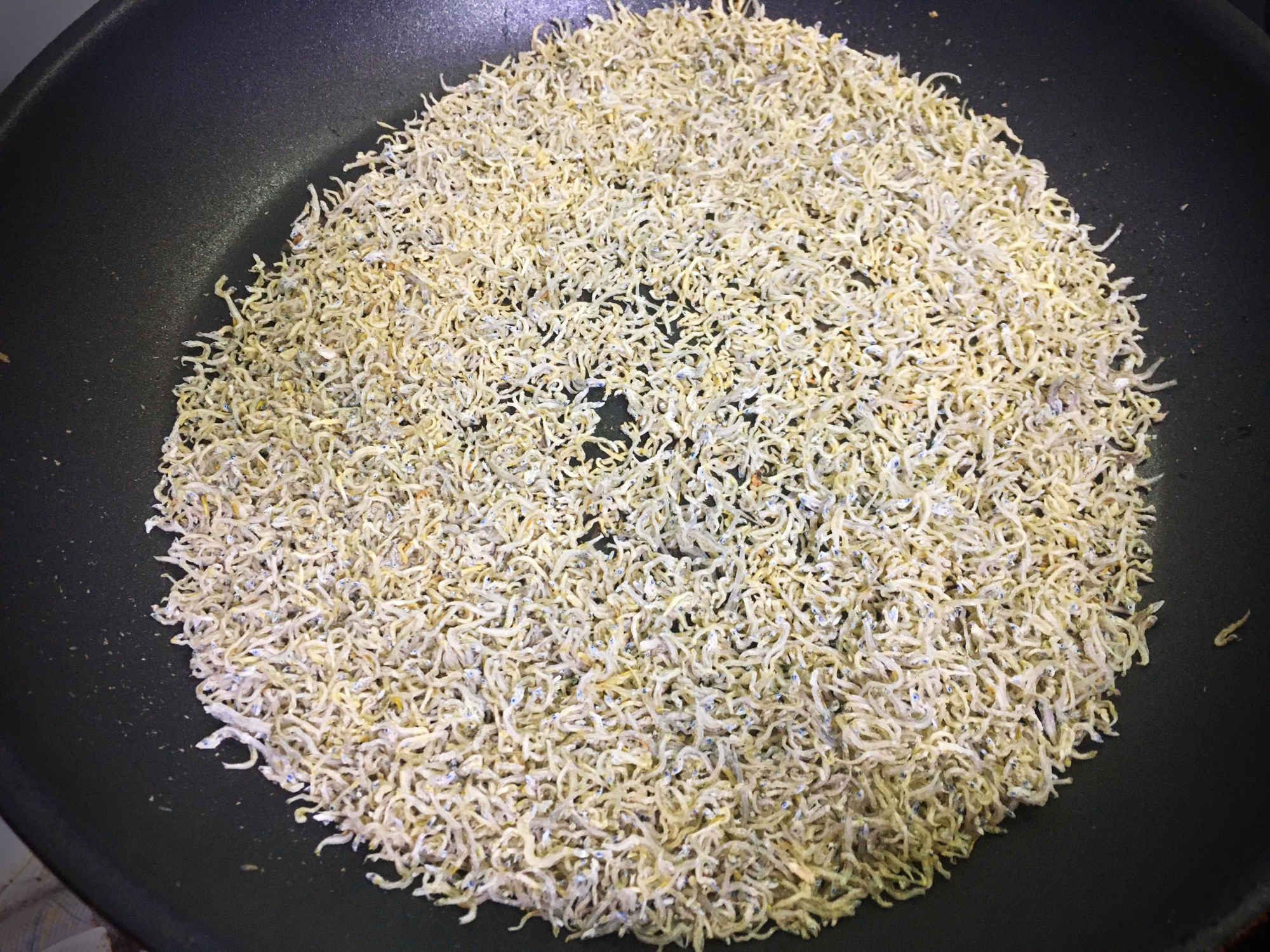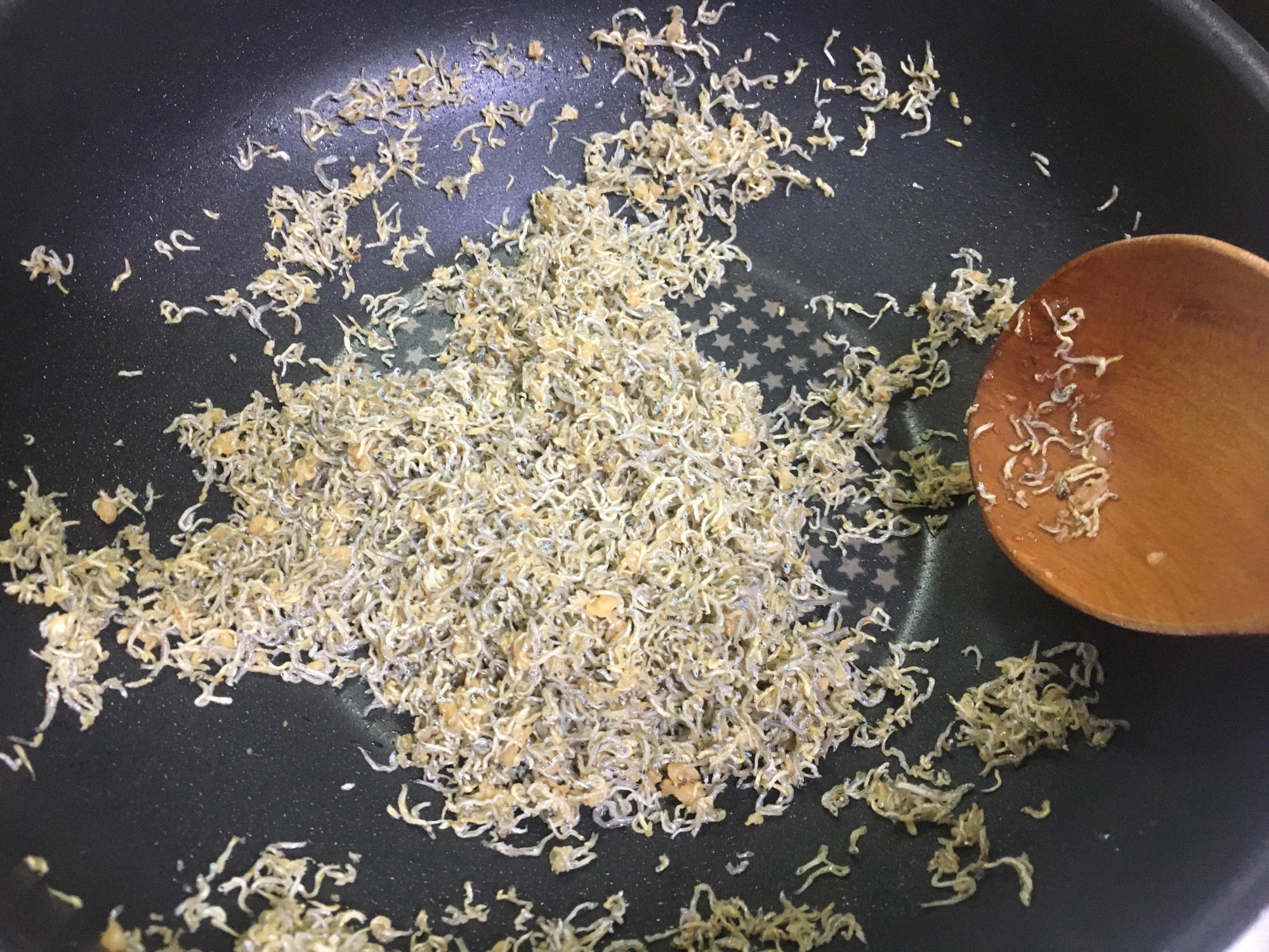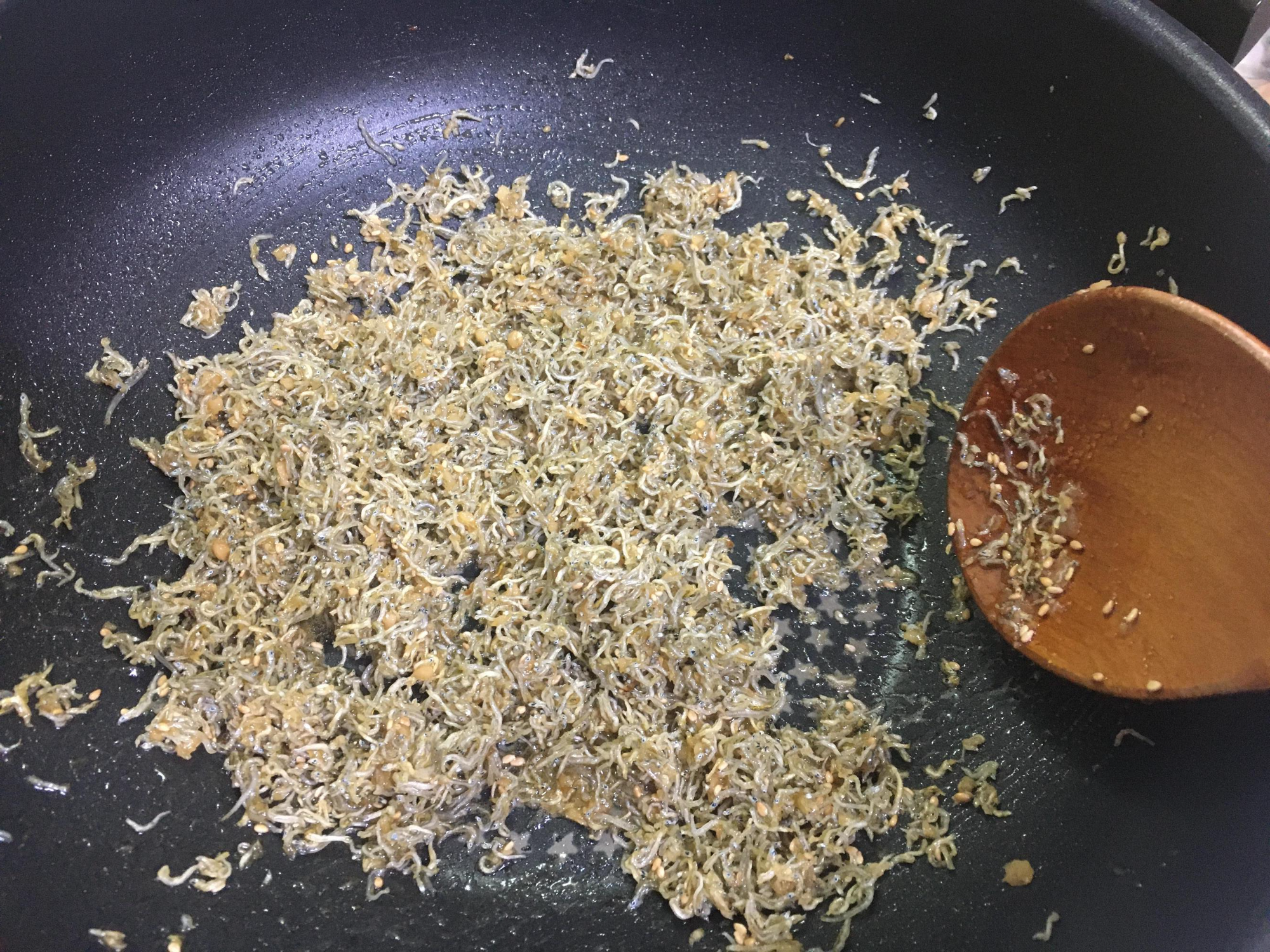 - 마늘 향이 은은하게 나면, 멸치를 넣고 볶아줍니다.