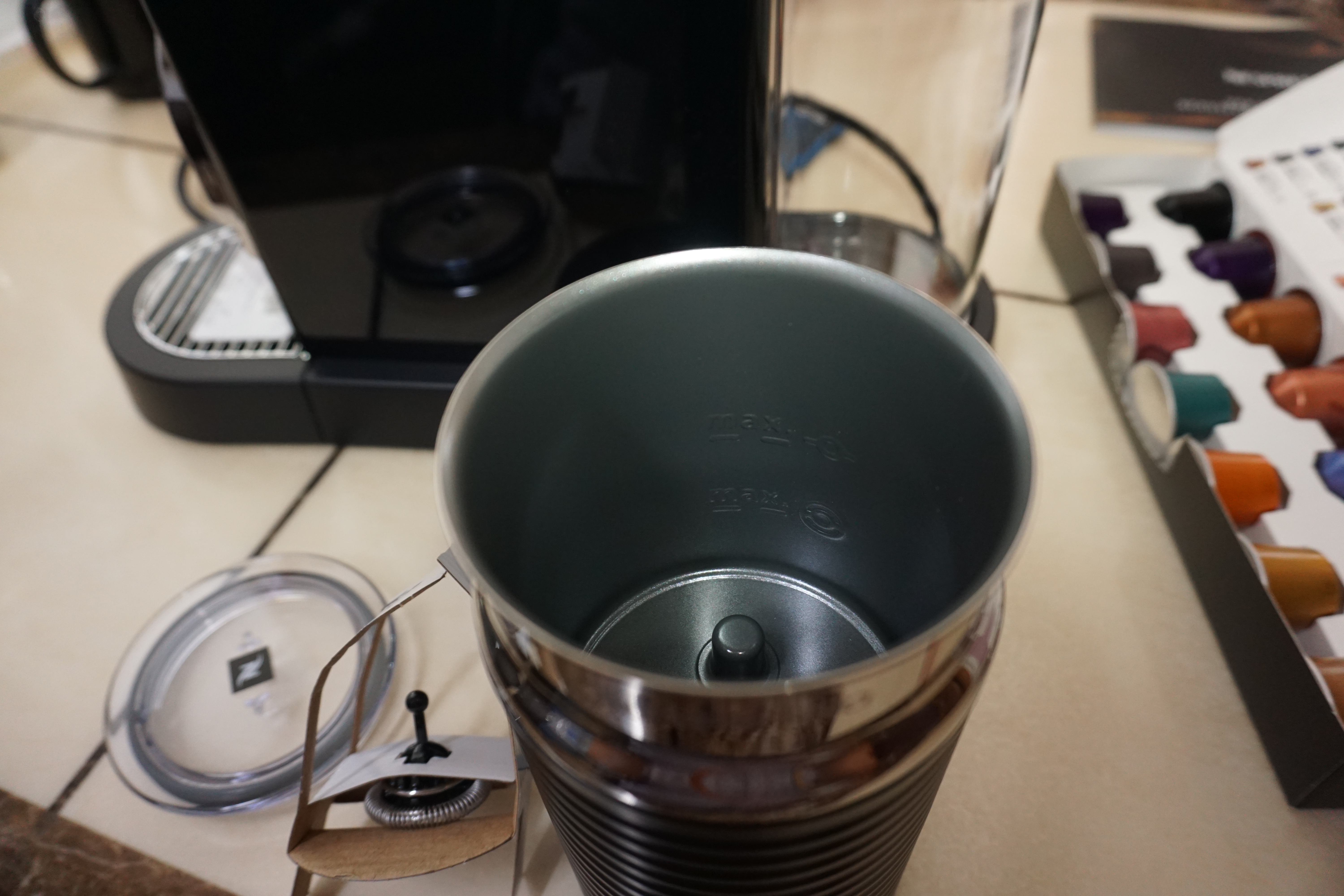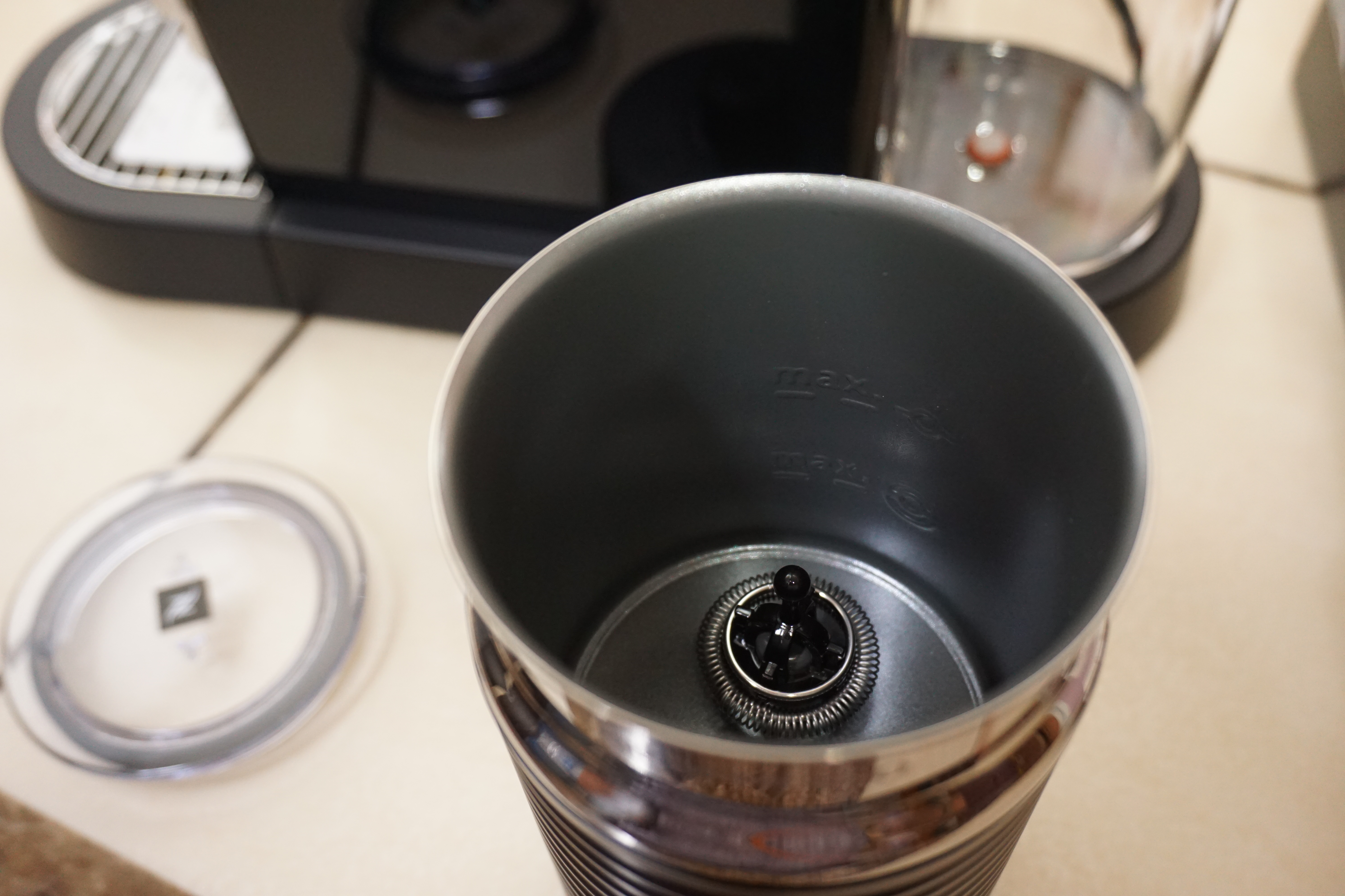 에어로치노 내부에는 우유 정량을 표시한 Min - Max 눈금 표시가 있고,