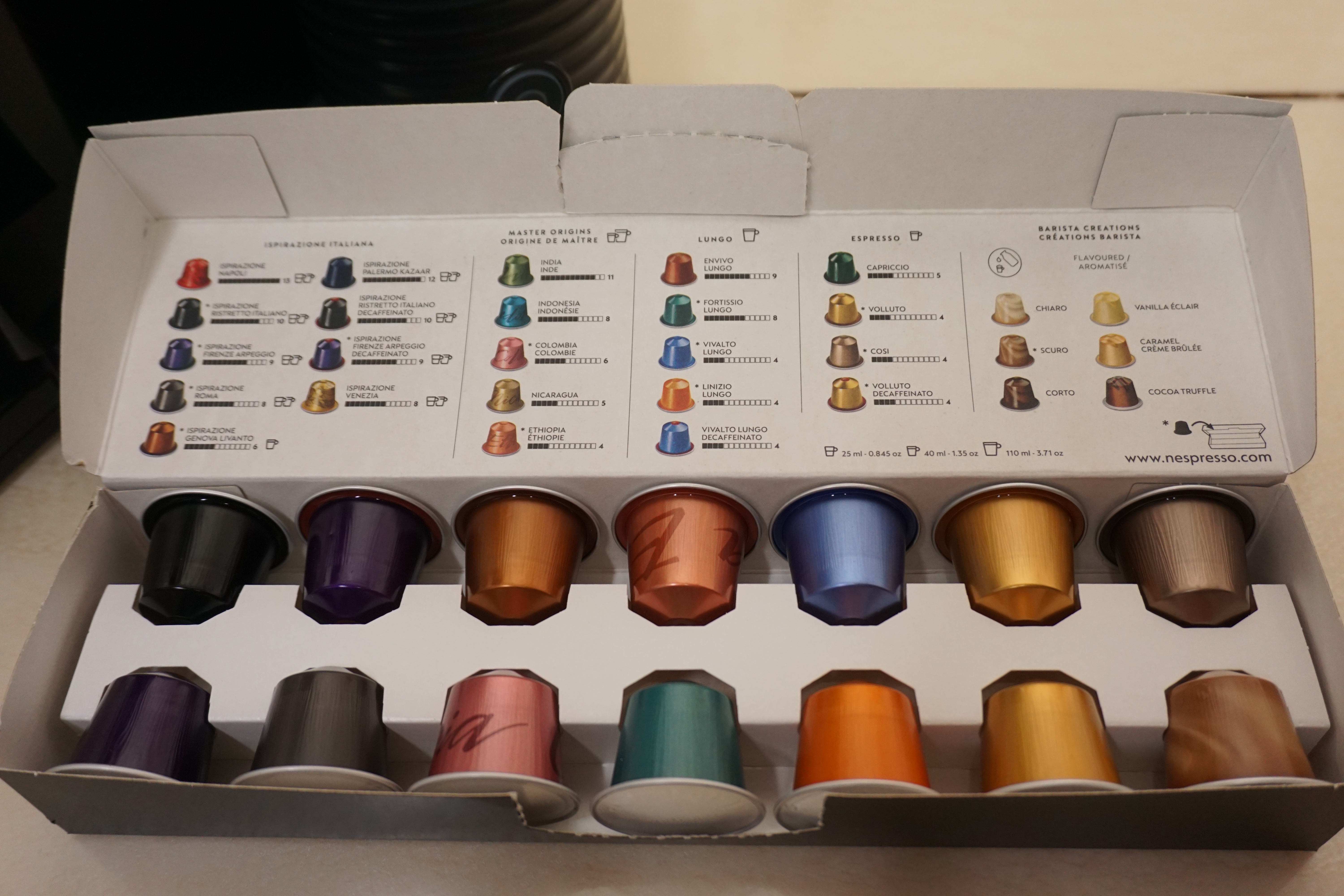 에스프레소용 캡슐도 보이고, 롱고용, 베리에이션 등 카테고리별 랜덤한 맛의 캡슐이 다양하게 담겨 있습니다.