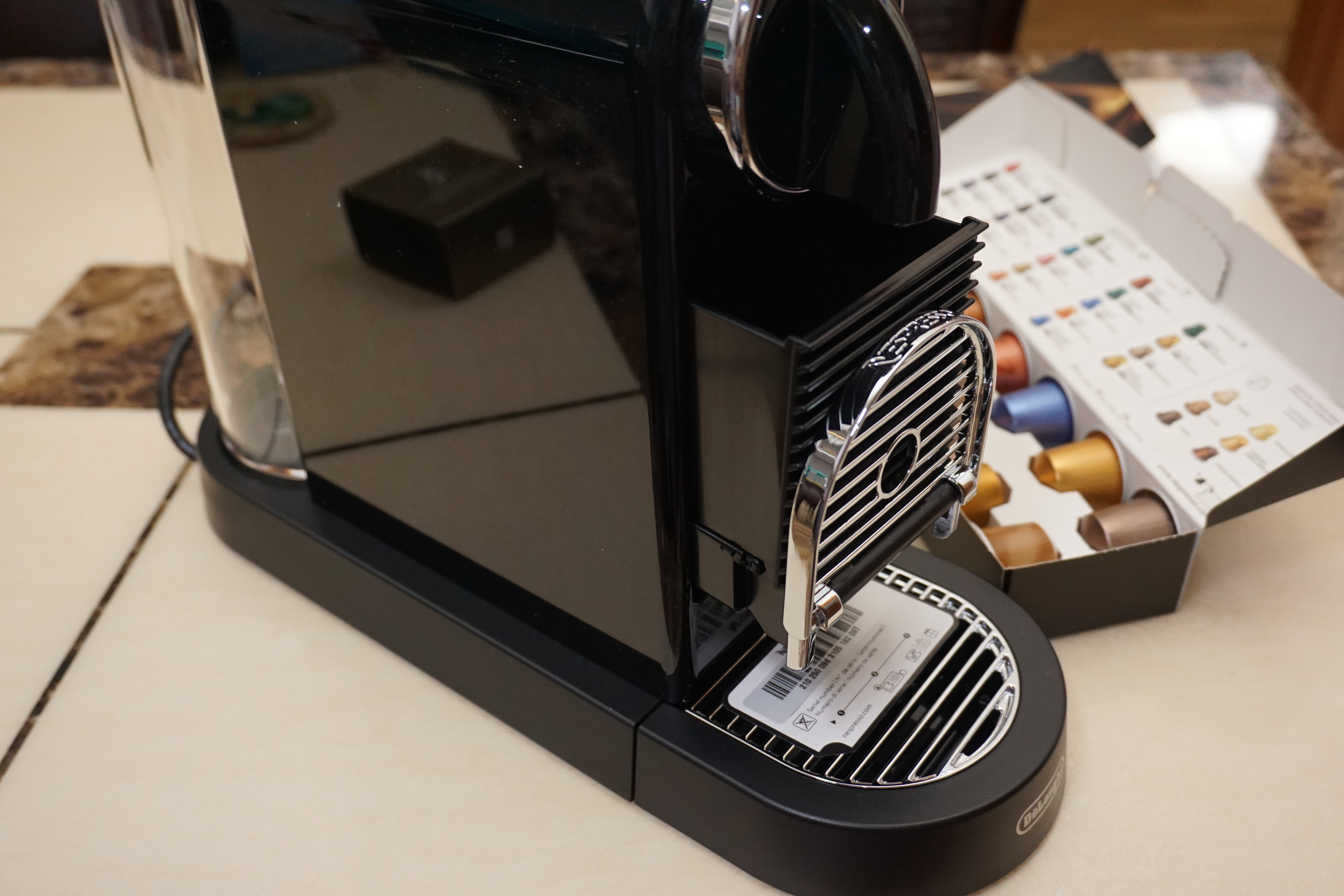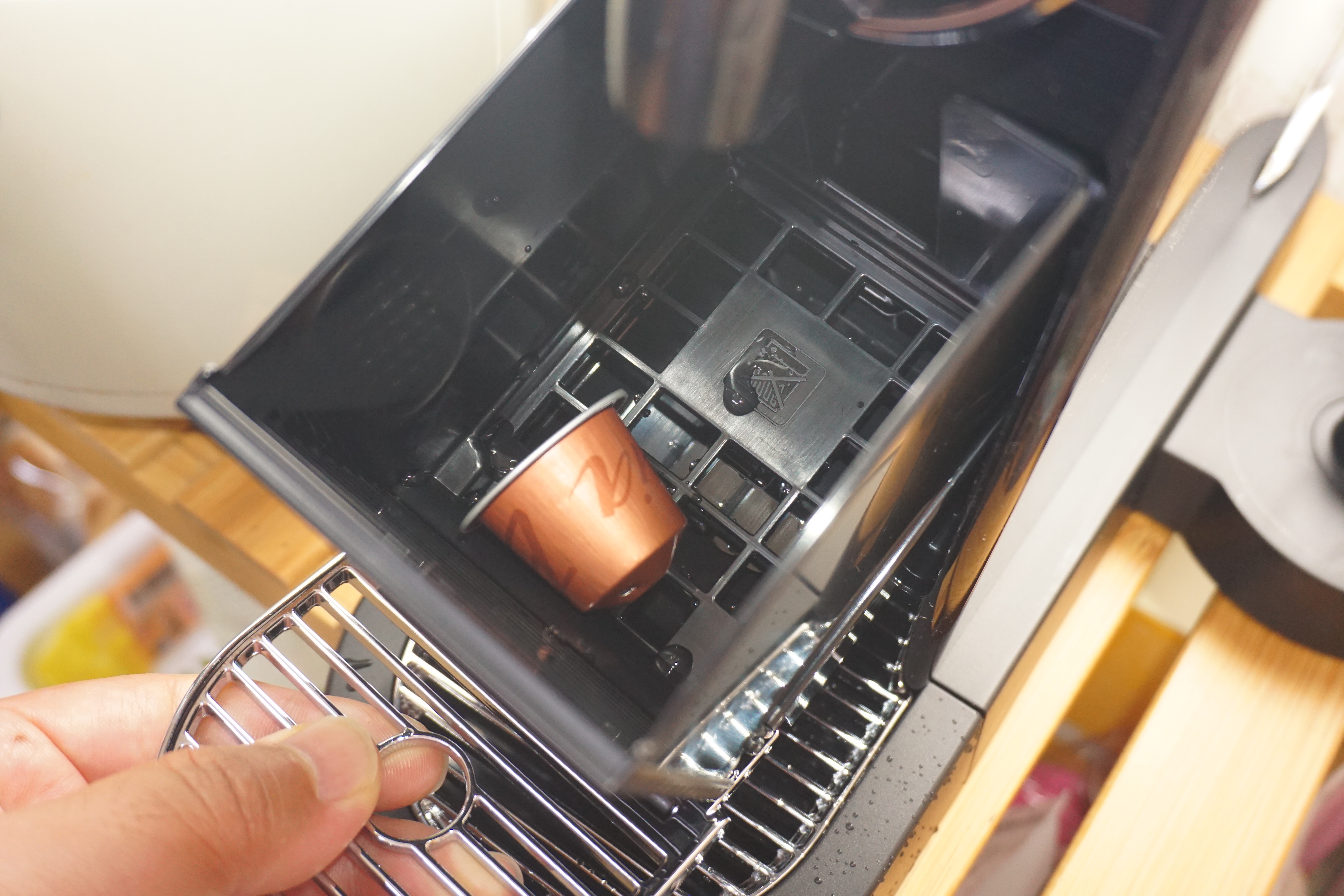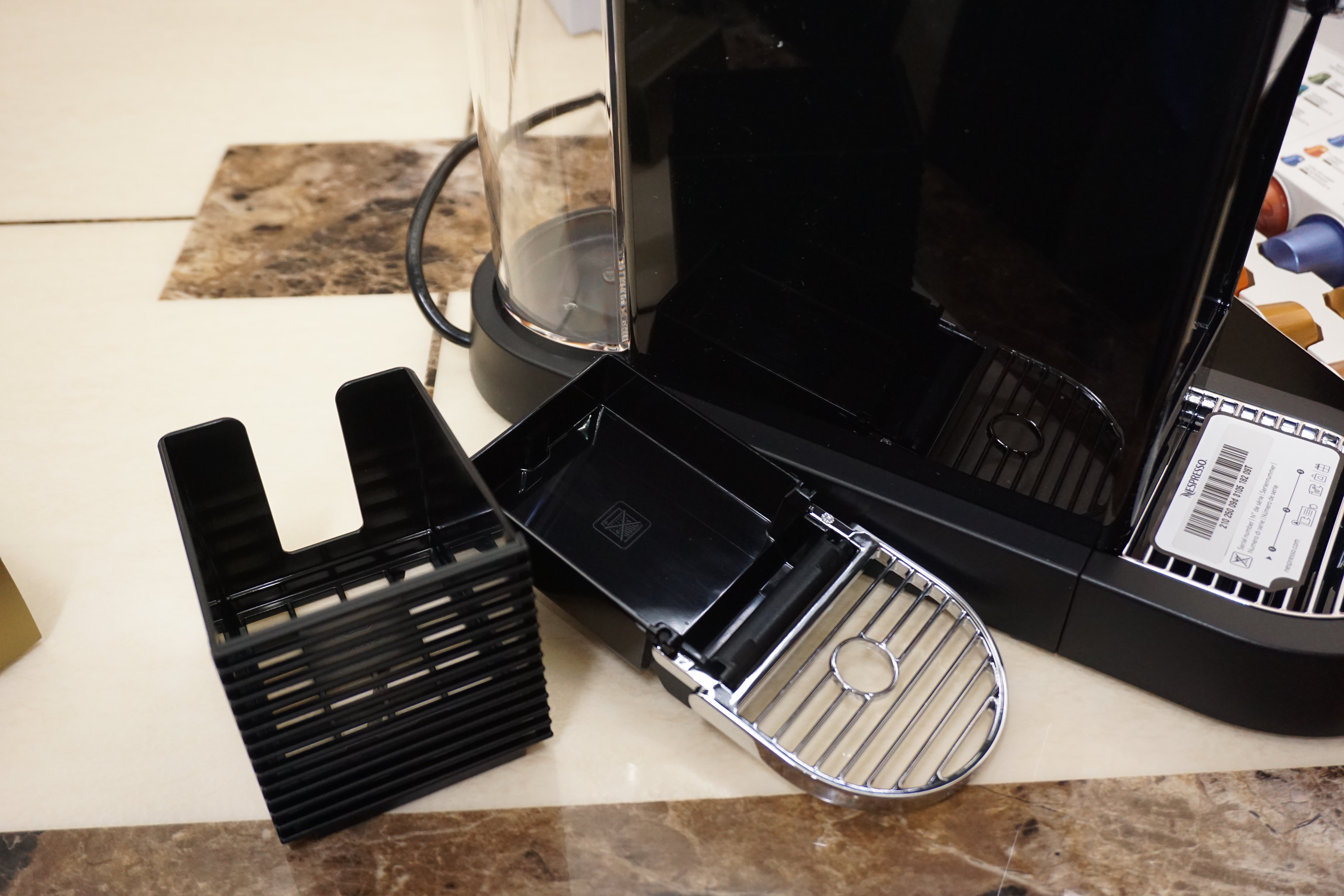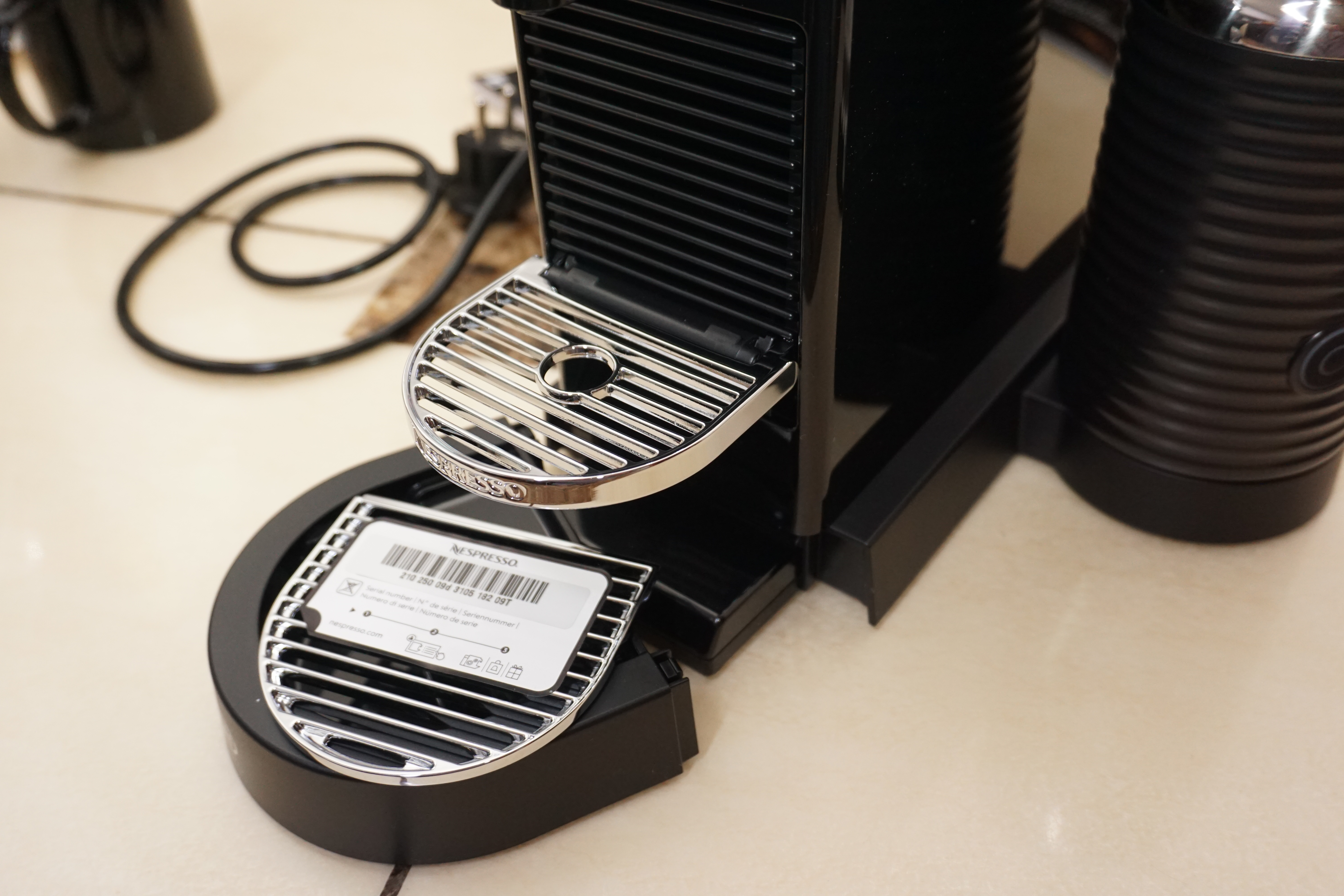 추출이 끝난 캡슐 보관 트레이는 에스프레소 컵 받침대와 일체형으로 되어 있으며,