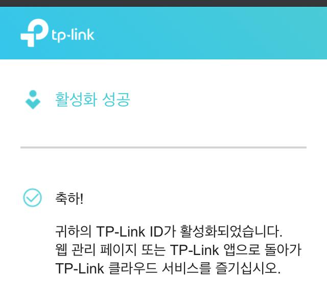 계정 등록이 정상적으로 진행되면 아래와 같이 활성화에 성공했다는 화면을 볼 수 있습니다.