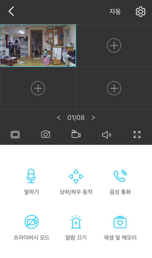 4분할 화면으로도 볼 수 있고, 카메라 각도를 조절할 수도 있으며, 양방향 대화도 가능합니다.