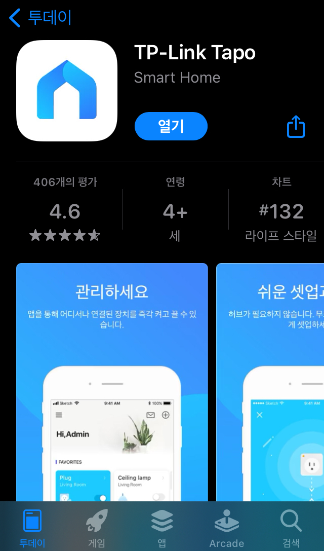 IOS 단말의 AppStore 나 Android 의 PlayStore 에서 "TP-Link Tapo" 어플을 다운받습니다.