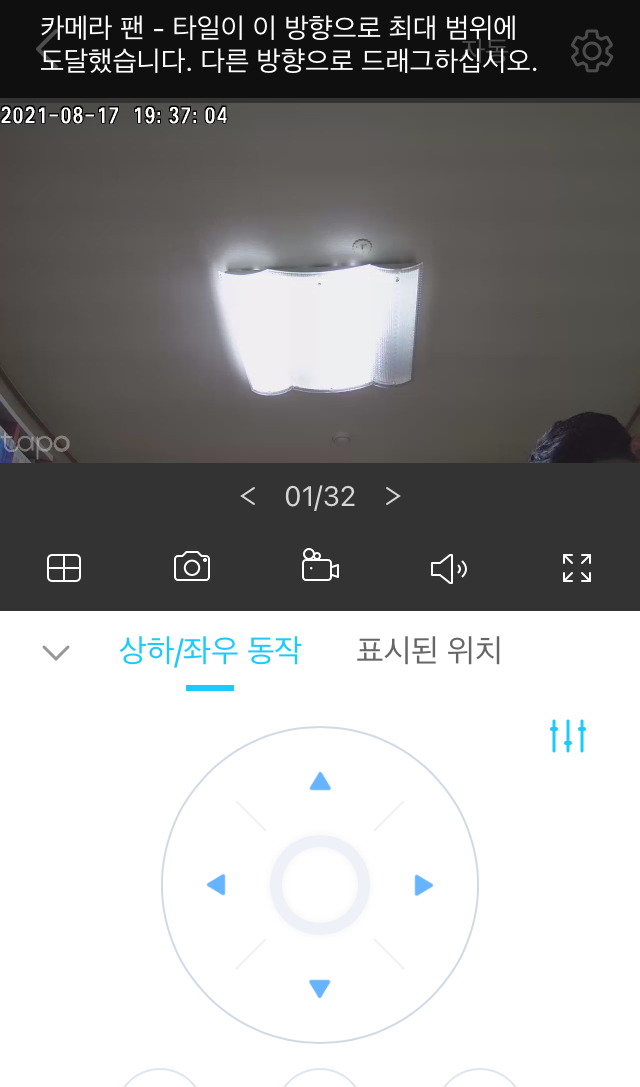 등록된 카메라를 선택하면 실시간 영상을 확인할 수 있으며,