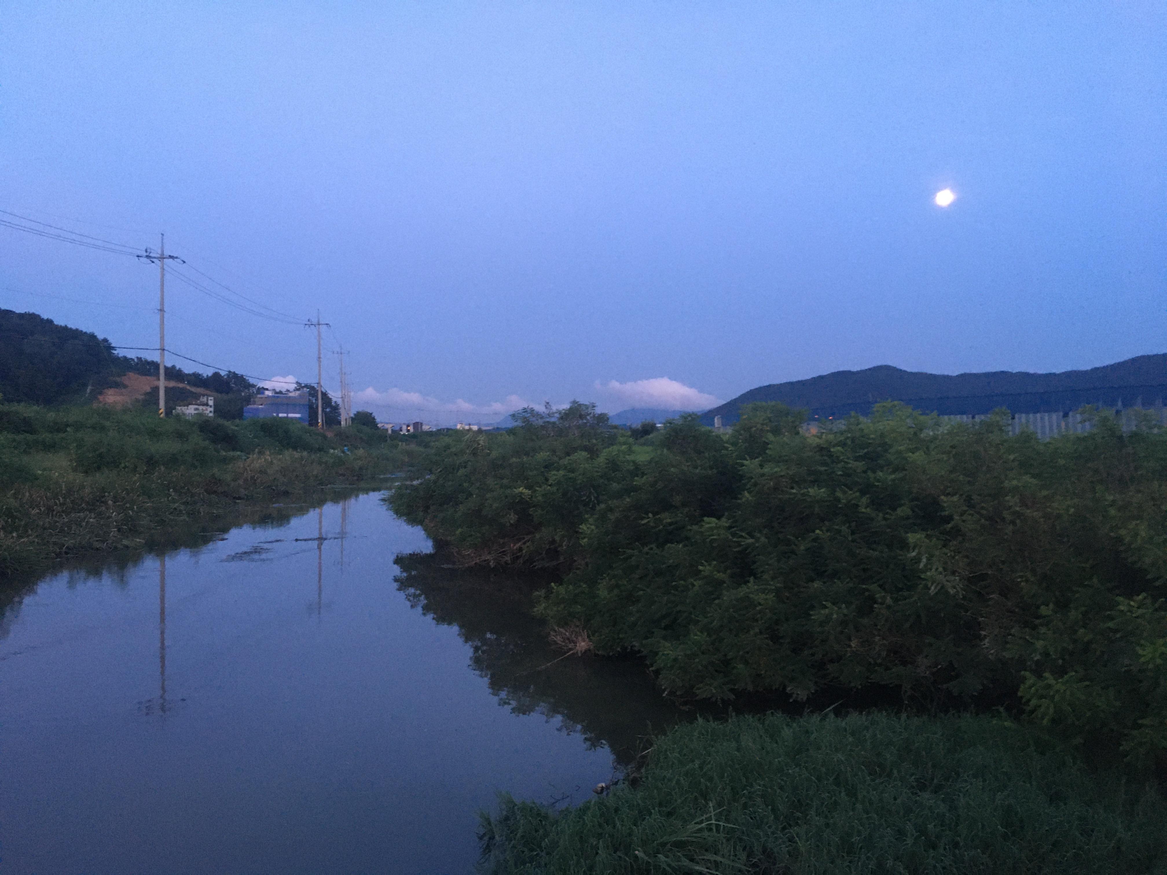 저녁 7시가 넘어가자 하늘에 달도 보이고, 슬 마무리를 할까 합니다.