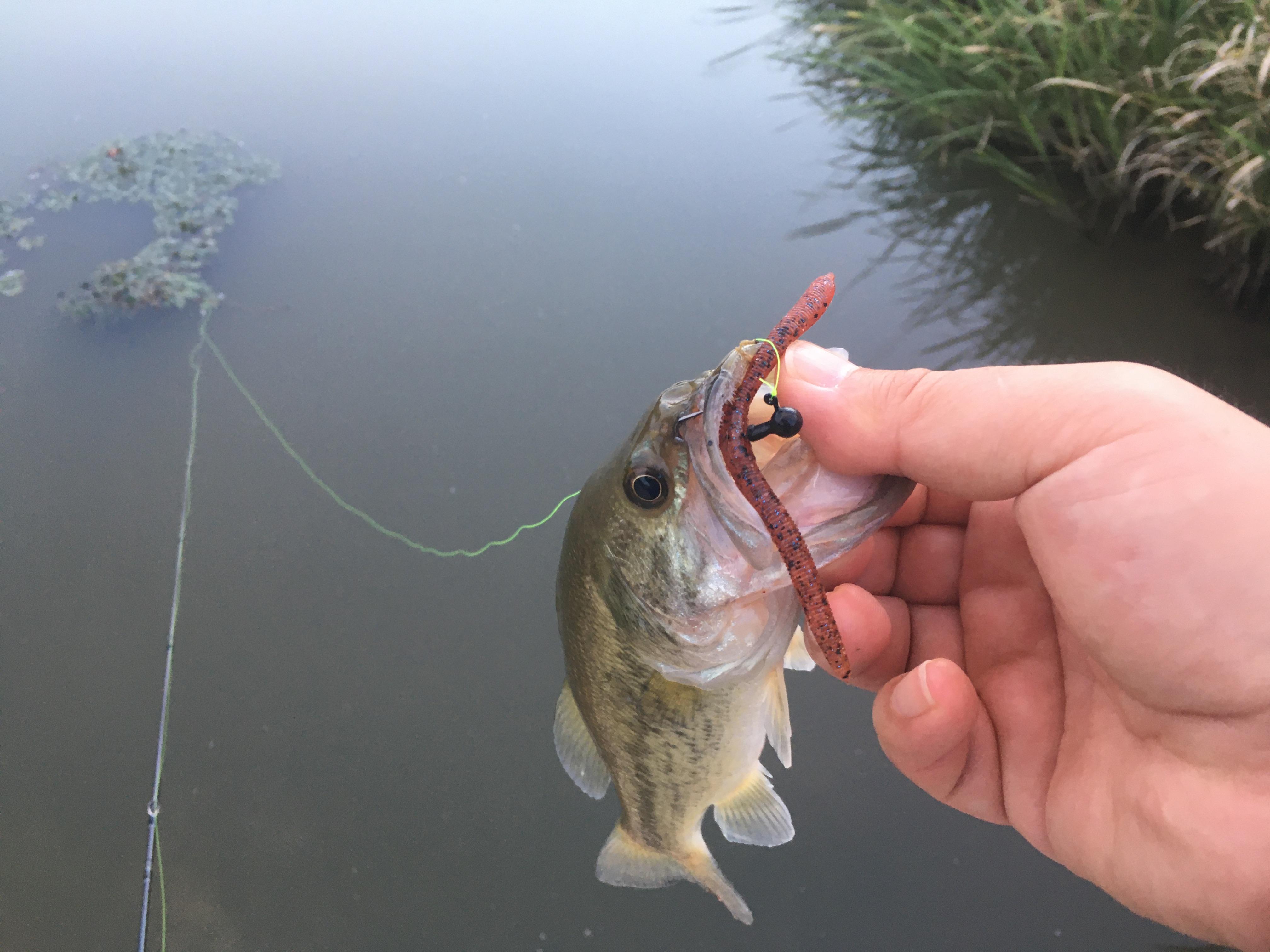 가볍게 3.5g 싱커에 3인치 웜으로 프리리그를 첫 캐스팅합니다.