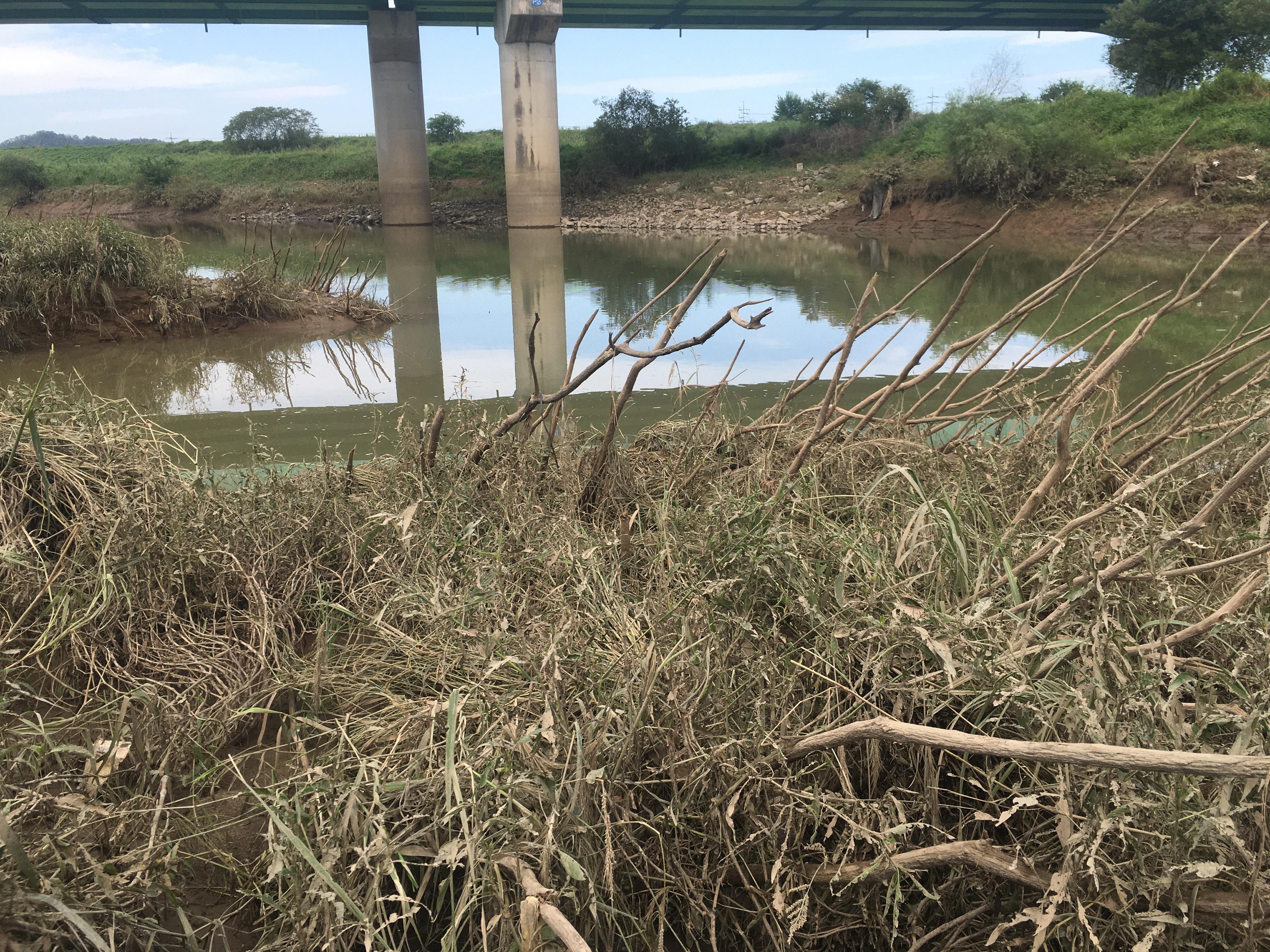 계속되는 비로 인해 다 떠내려가고 물속에 수초만 조금 남아 있는 것 같습니다.