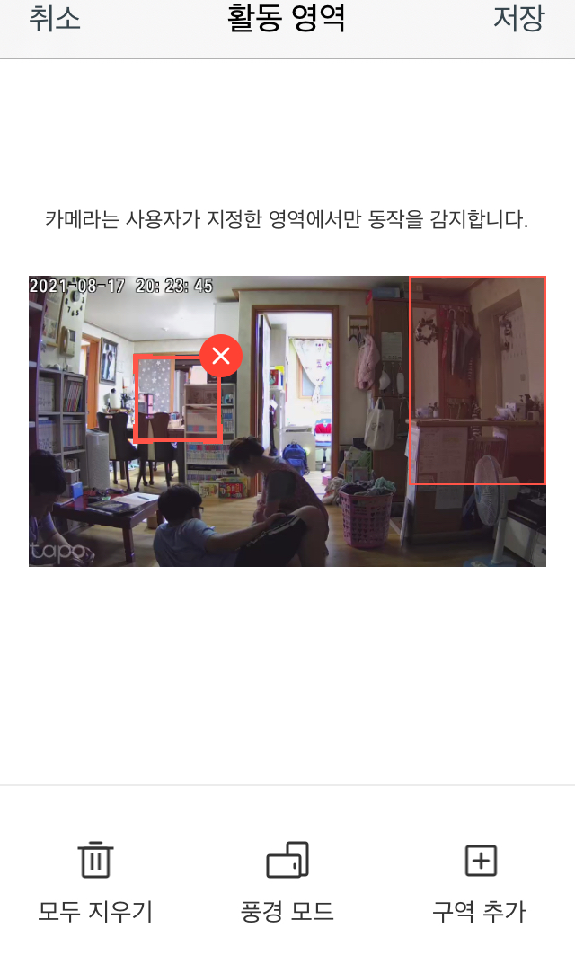 티피링크는 사용자가 지정한 영역에서만 움직임 감지를 받을 수 있습니다.