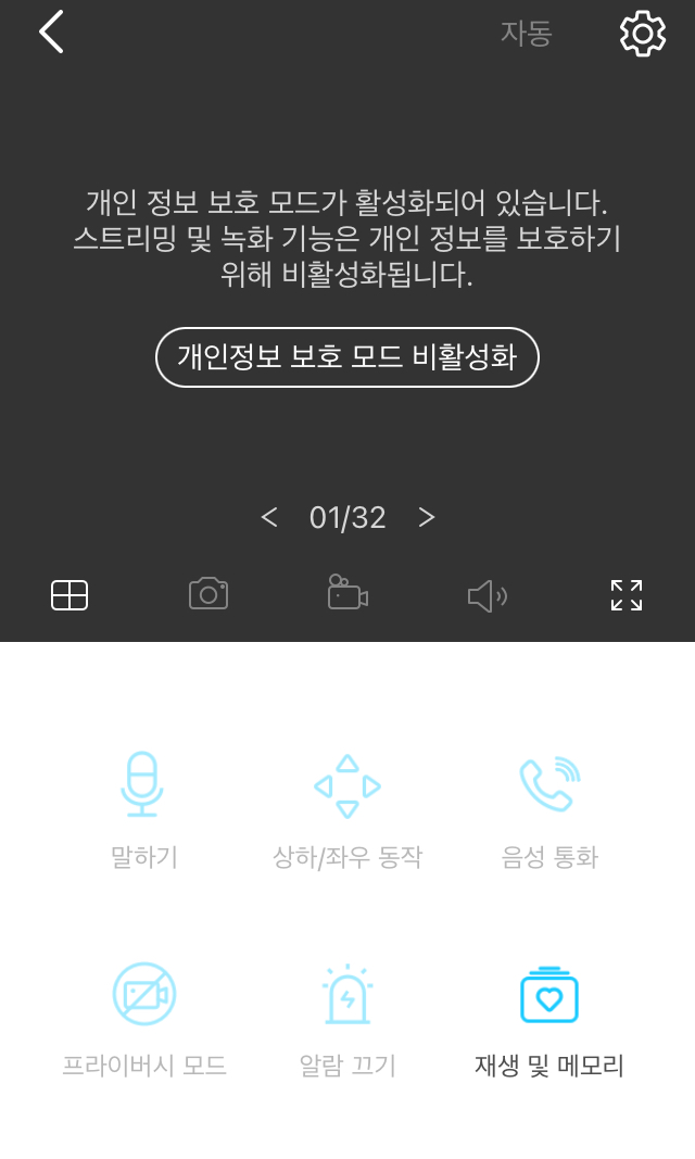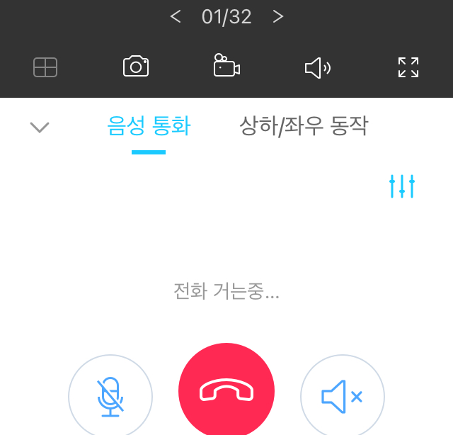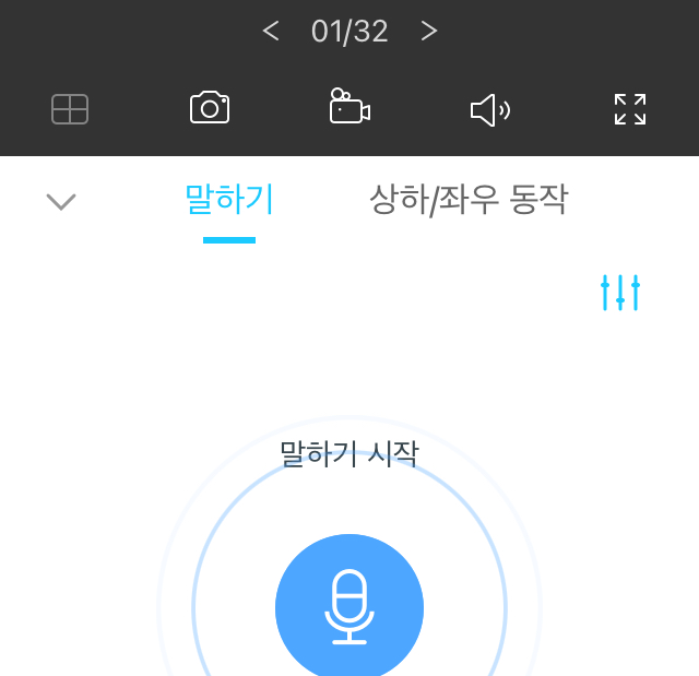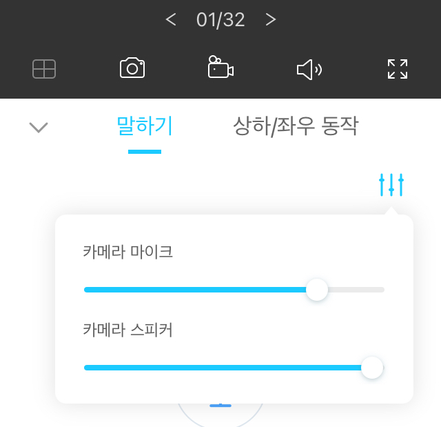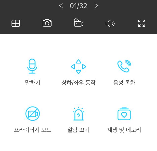 카메라 선택 후 할 수 있는 기능은 틸트 조작, 말하기, 음성통화, 녹화영상 보기 등이 가능합니다.
