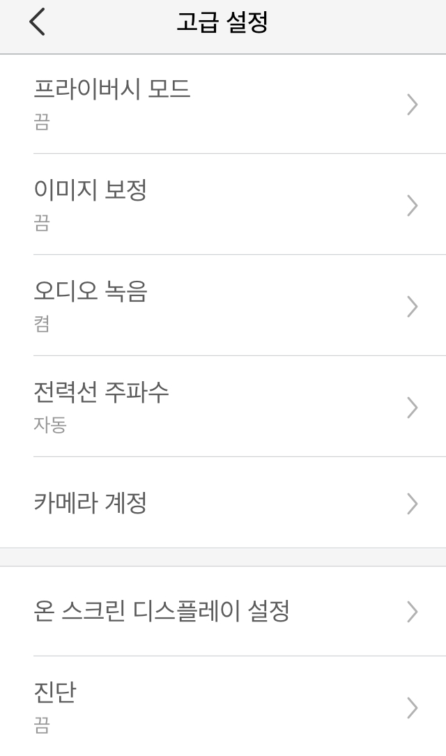 | LED | 카메라 전면 녹색 LED On/Off 가능 |
