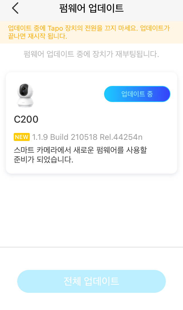 설치된 카메라가 여러 대일 경우 한 번에 모두 업데이트 가능하며,