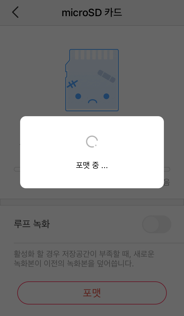 처음 MicroSD 메모리를 카메라 전면 슬롯에 삽입하면 포맷을 해야 하며,