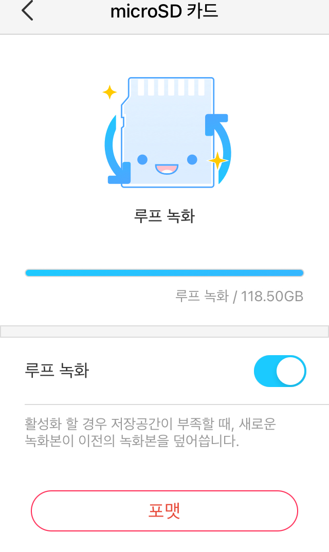 녹화 설정을 어떻게 해 놓느냐에 따라 MicroSD 메모리에 저장되는 기간이 달라집니다.
