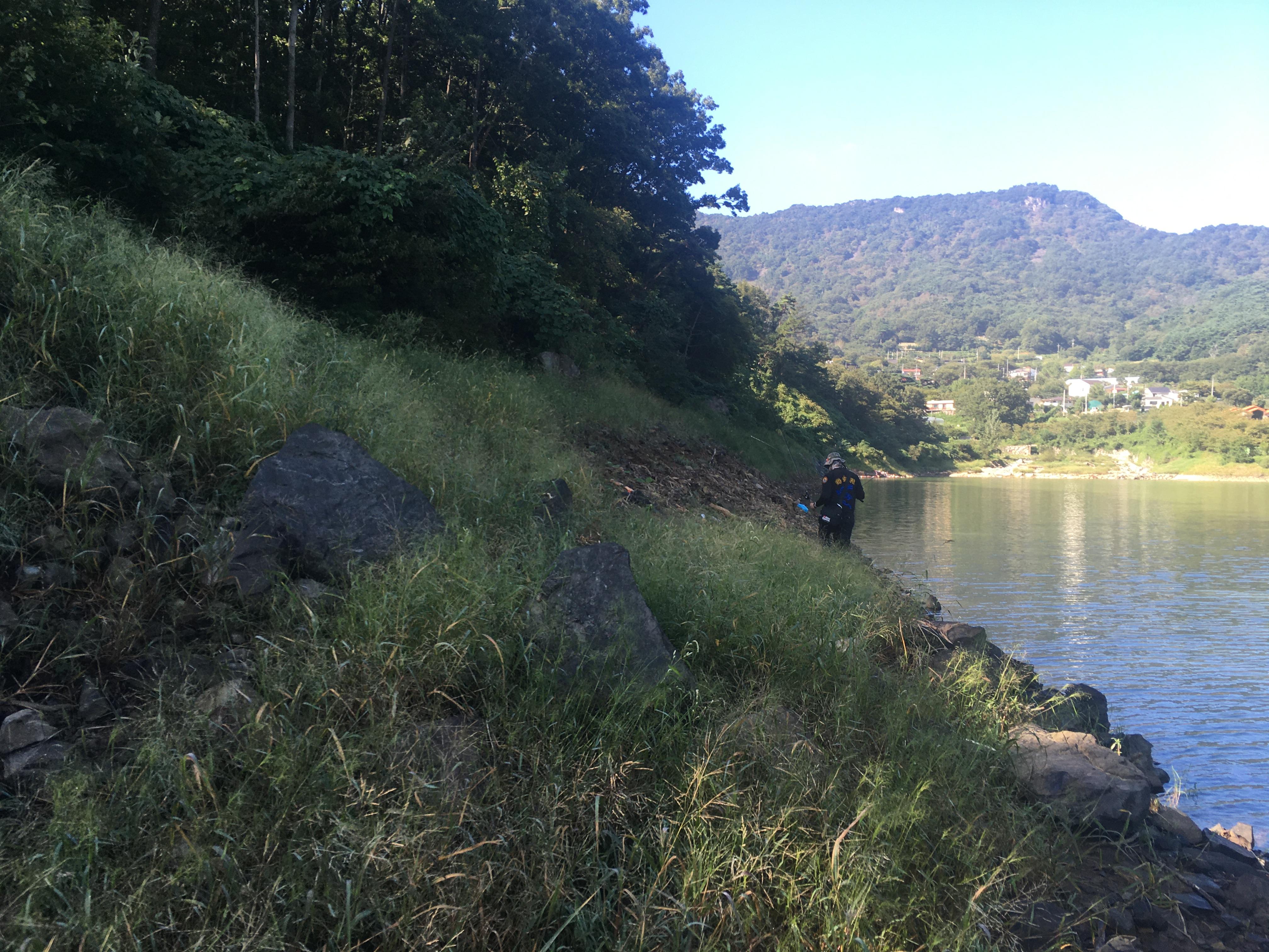 처음 포인트에 들어설 때는 무턱대고 물가에 서지 않습니다.