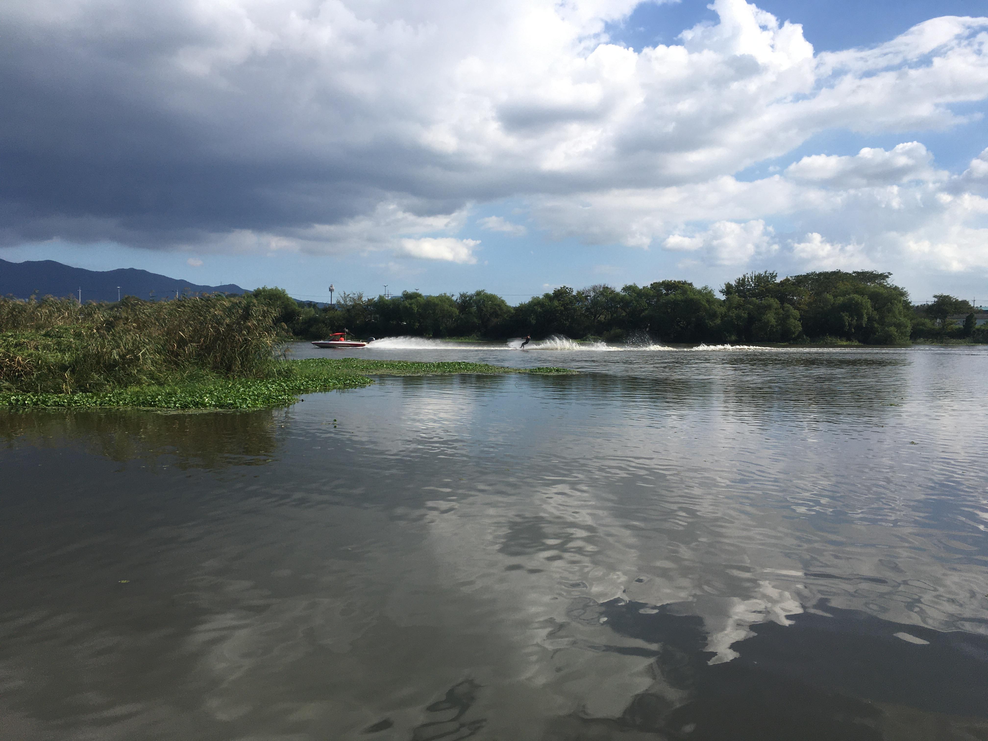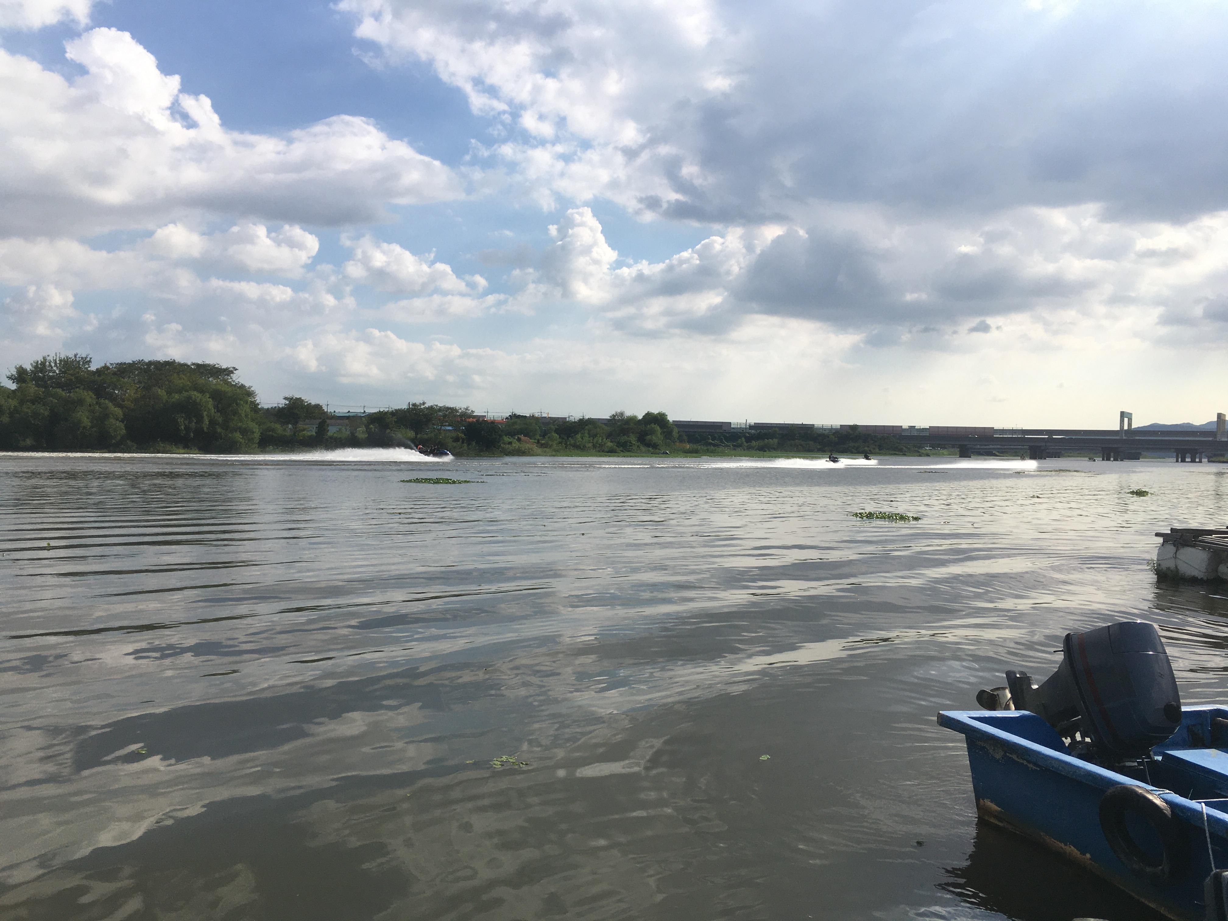 시끄러운 엔진소리와 함께 수상스키를 타는 분들이