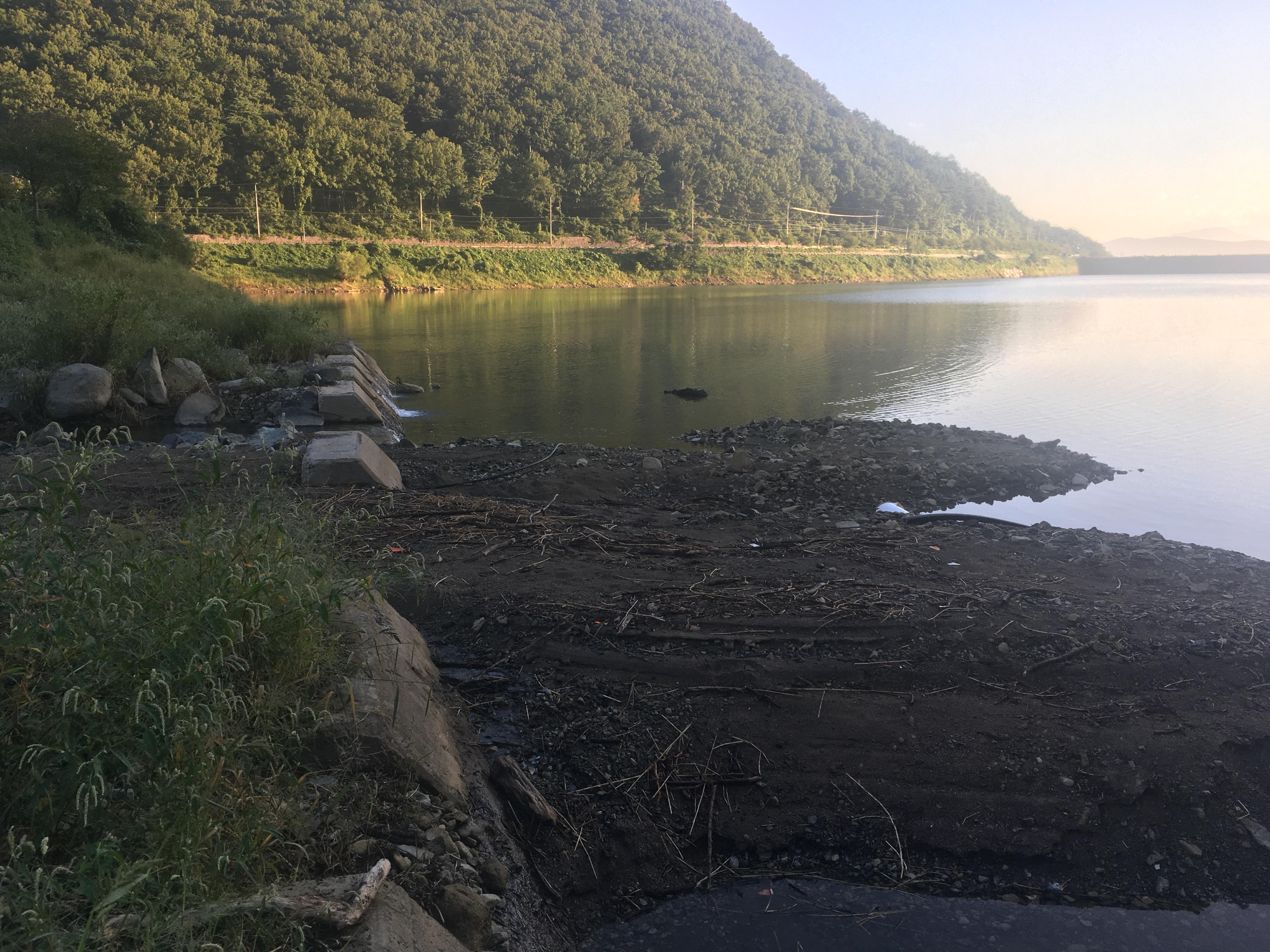 먼저 산쪽에서 졸졸졸 내려오는 새물 유입구 쪽으로 진입합니다.