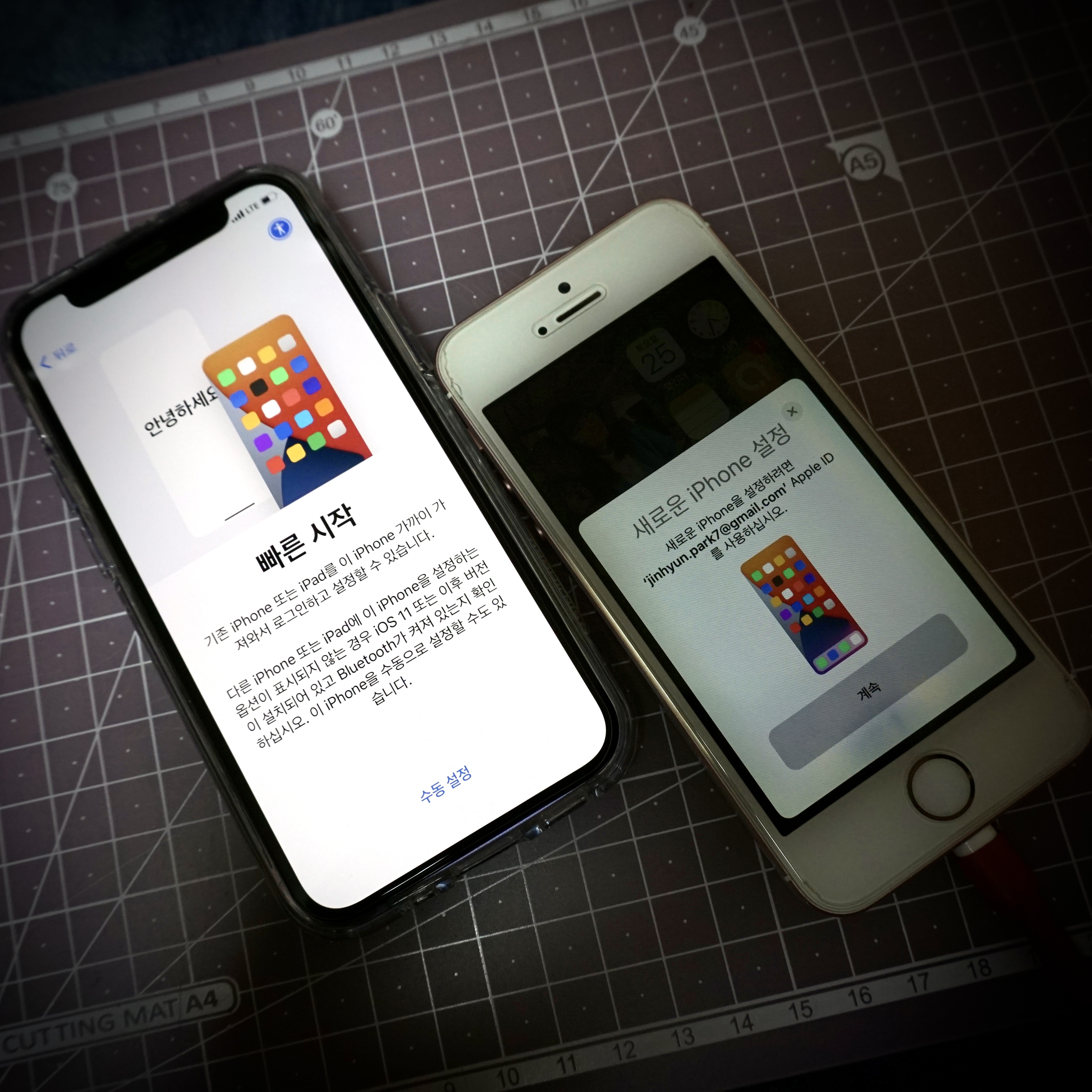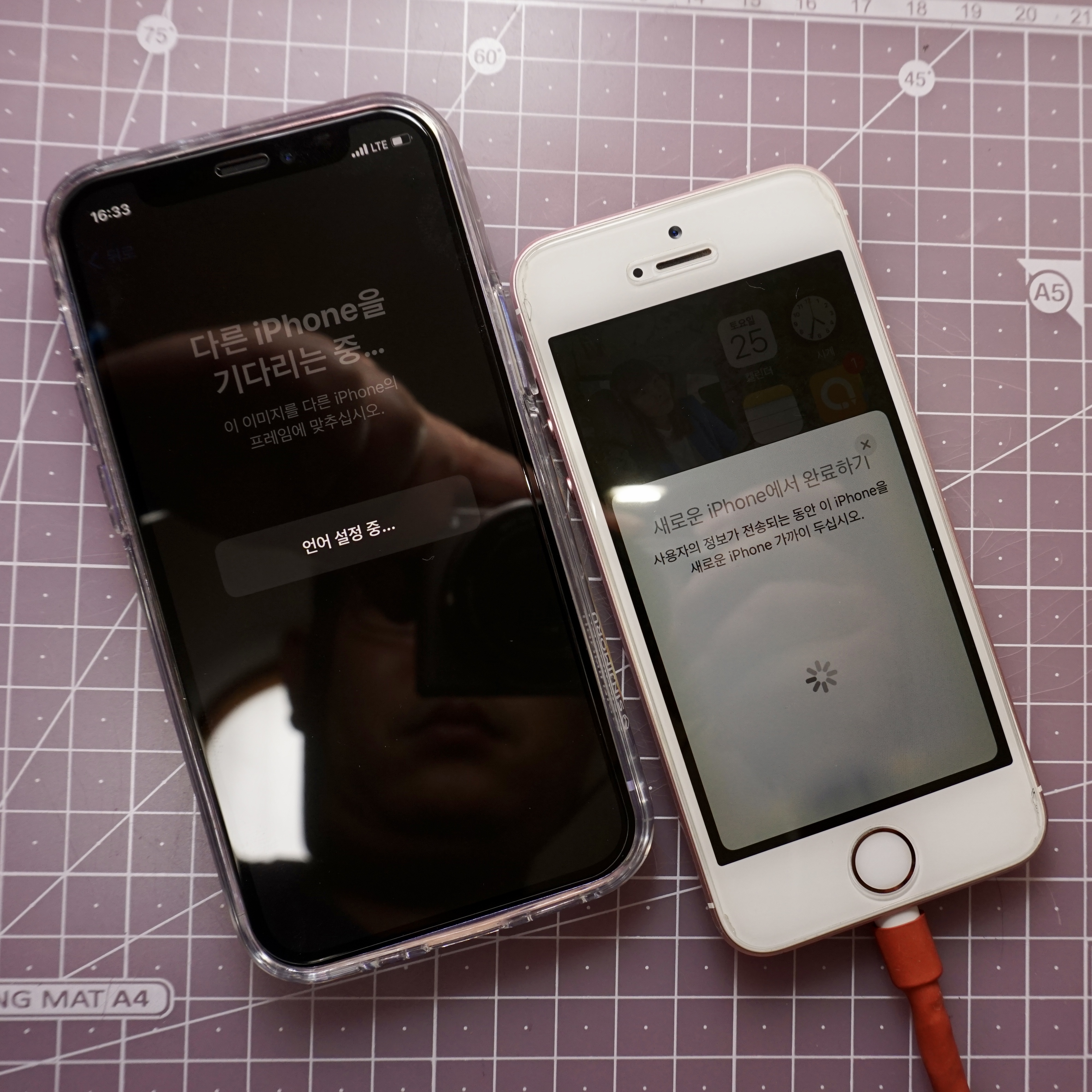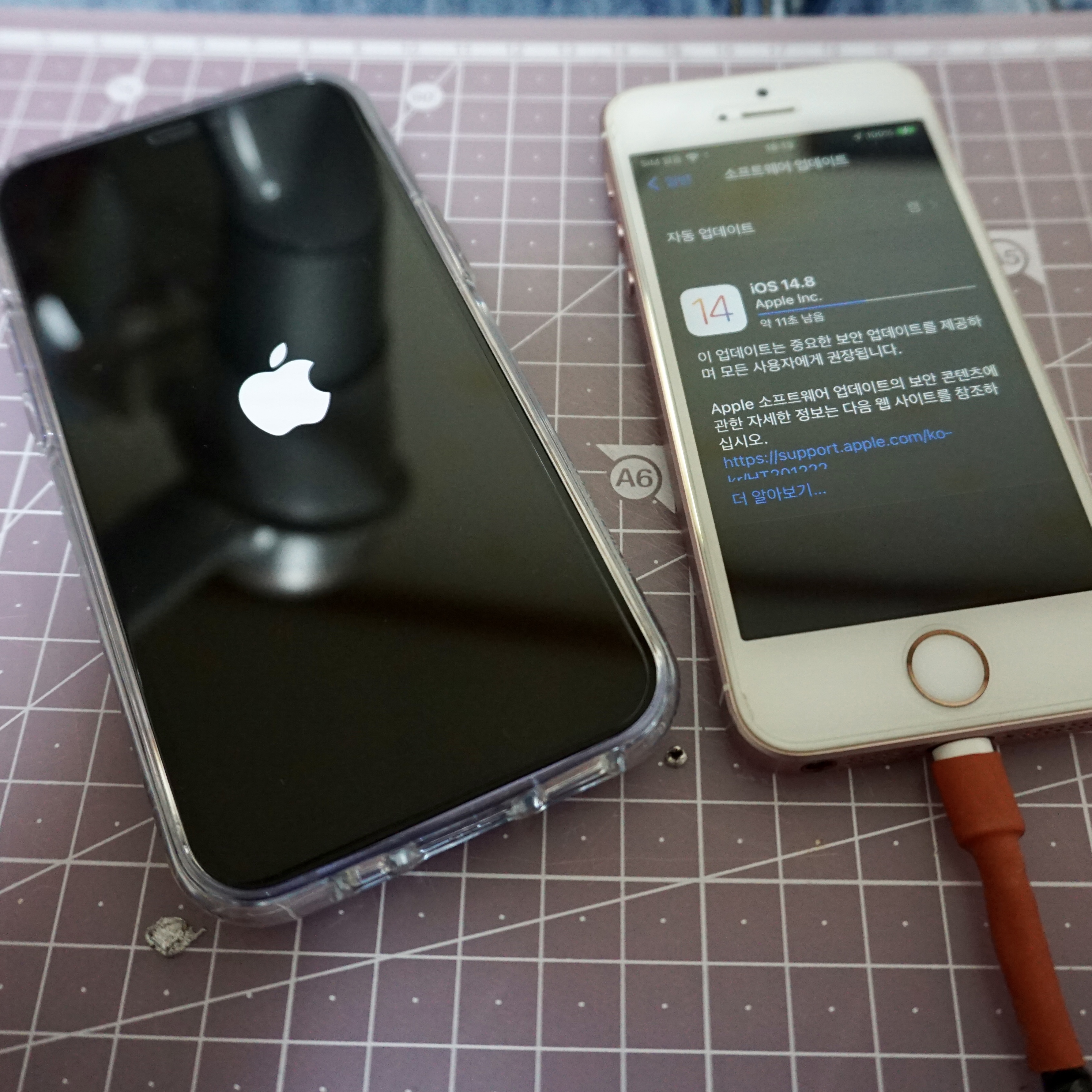 iOS 14.8 로 두 대의 전화기를 OS 버전을 동일하게 맞추었습니다.