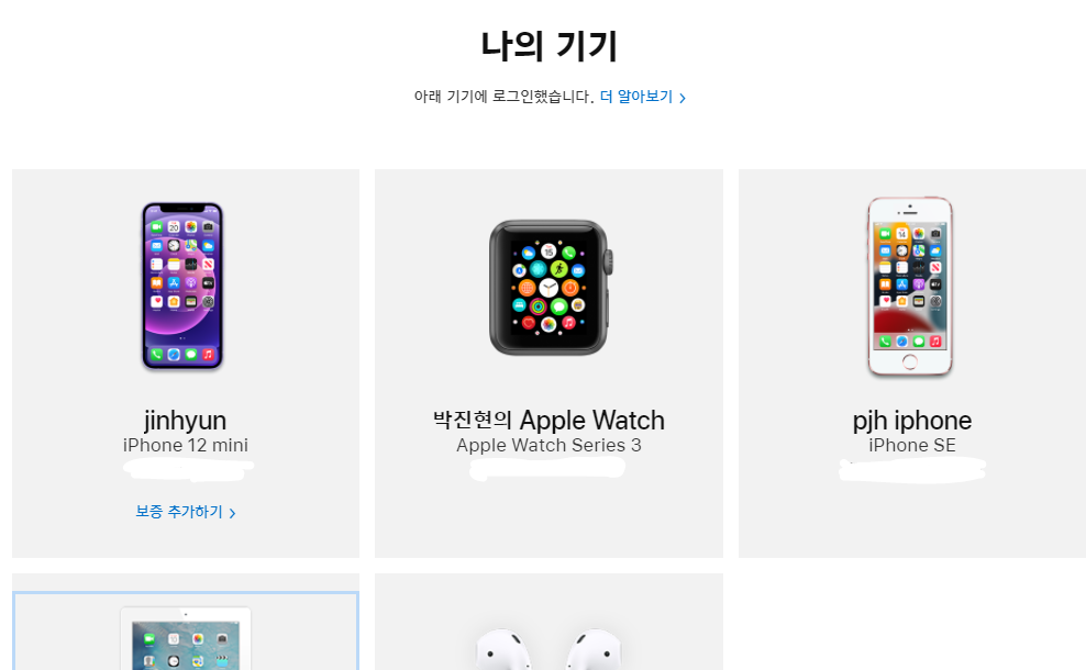 를 클릭하시면 본인이 보유한 애플 기기를 한 눈에 확인하실 수 있습니다.