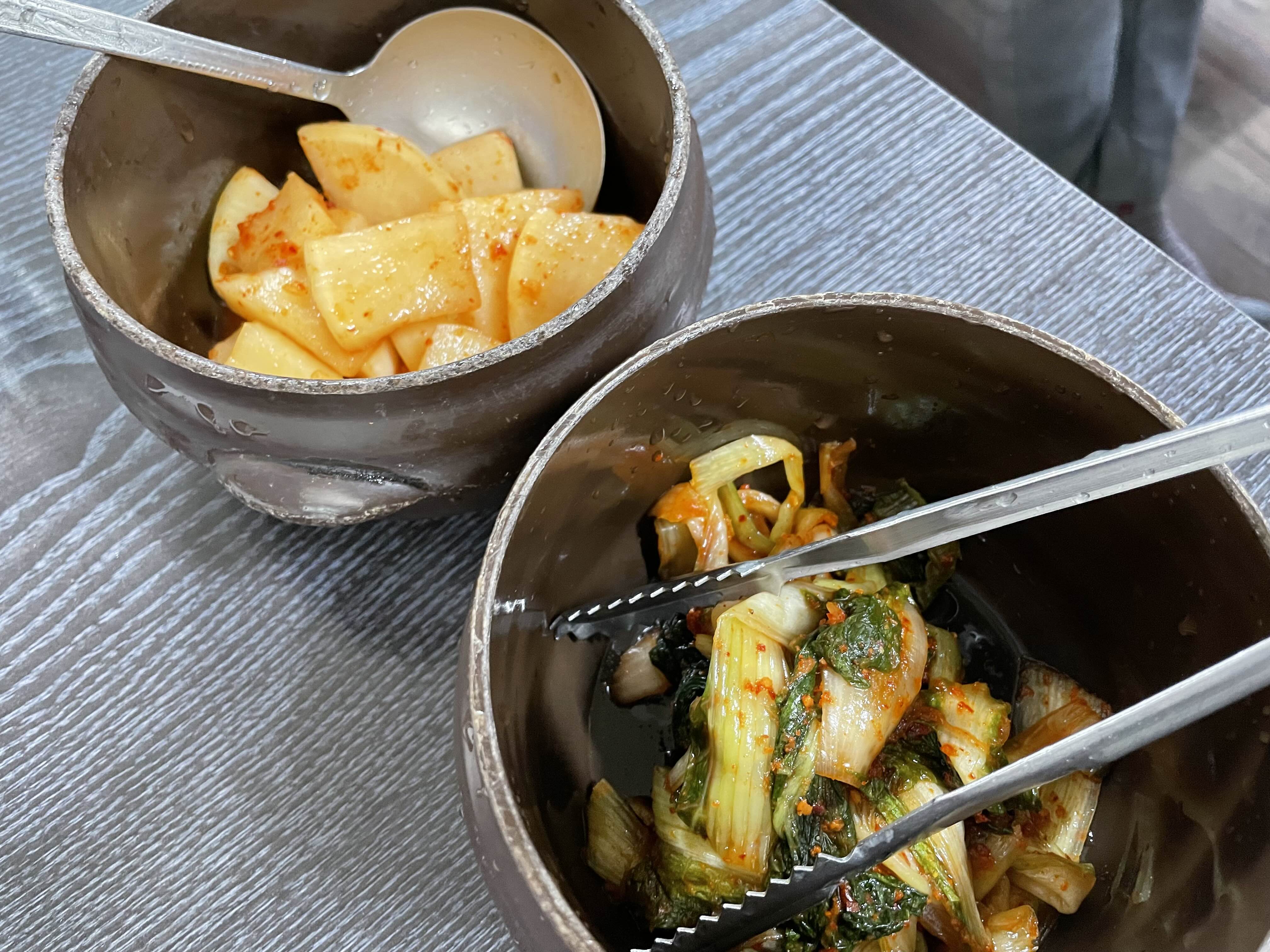 반찬은 따로 나오는 거 없이 김치만 두 종류 덜어 먹을 수 있게 나옵니다.