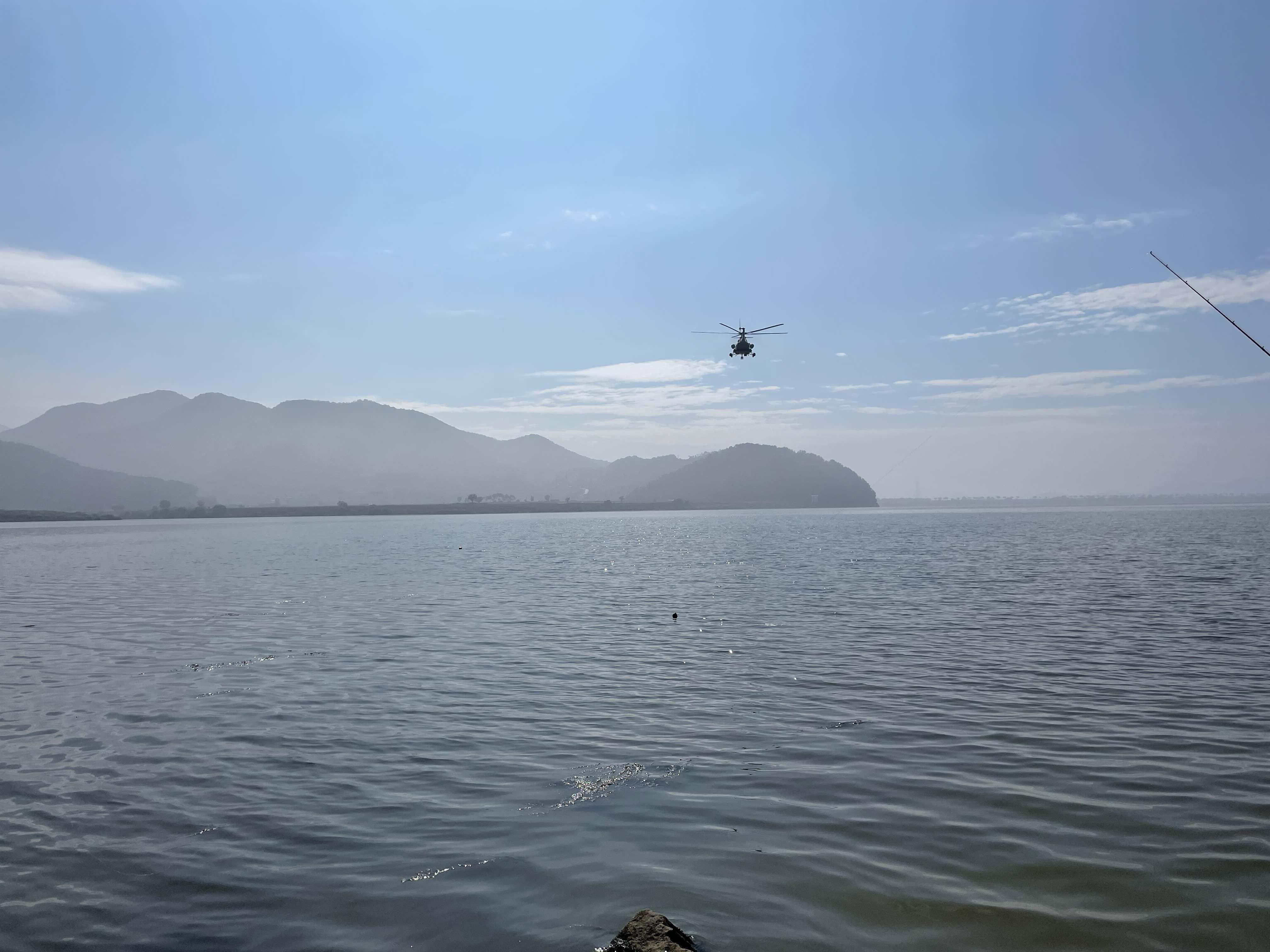 한창 낚시를 하고 있는데 어디선가 굉음이 들리더니
