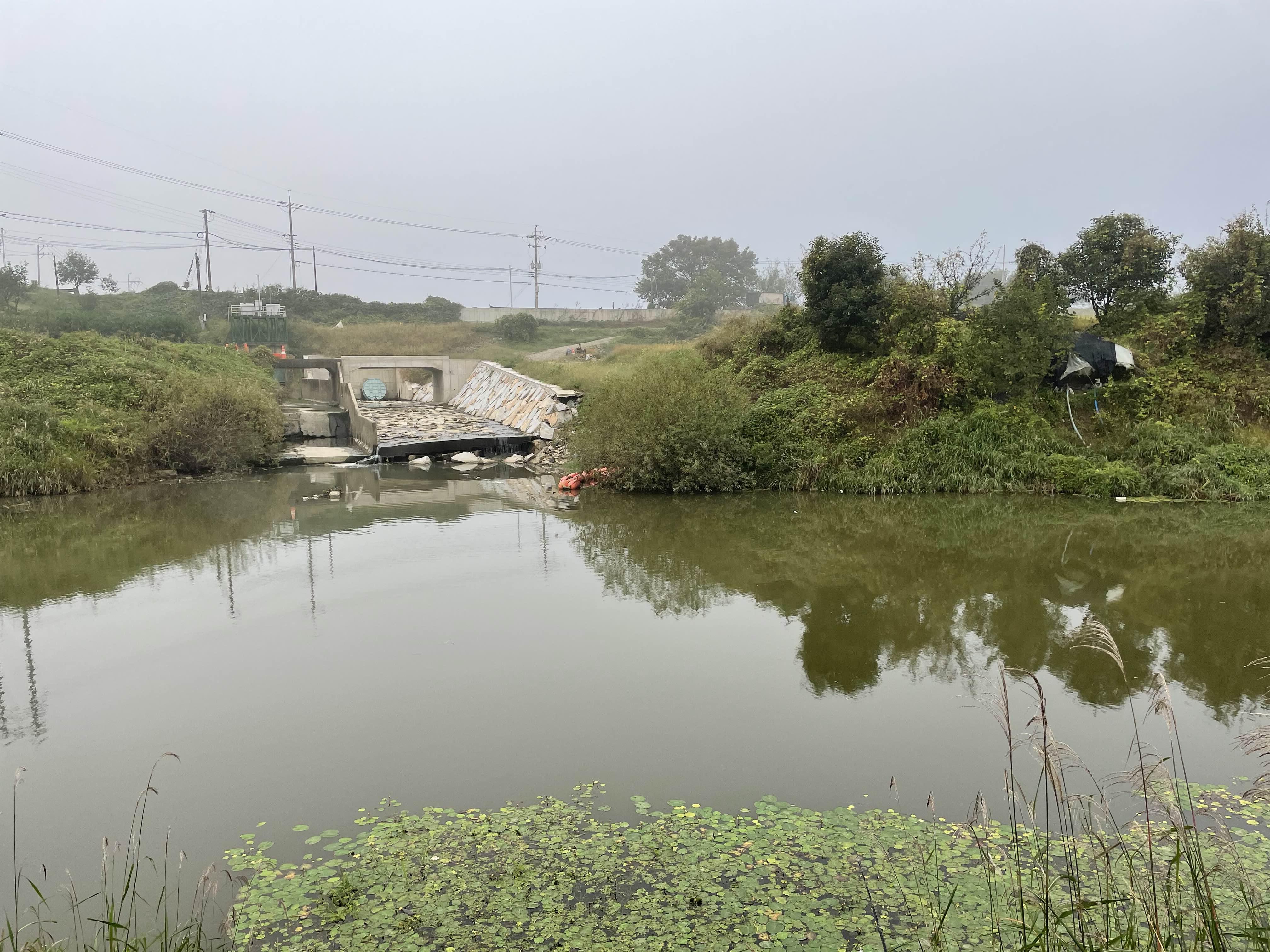 기존 구조물옆에 석축을 쌓아 물길을 하나 더 만들어 놨네요.