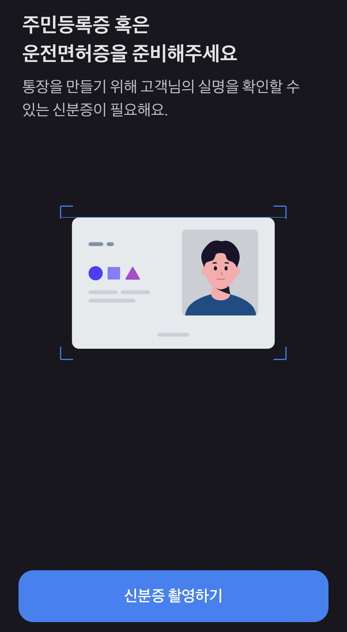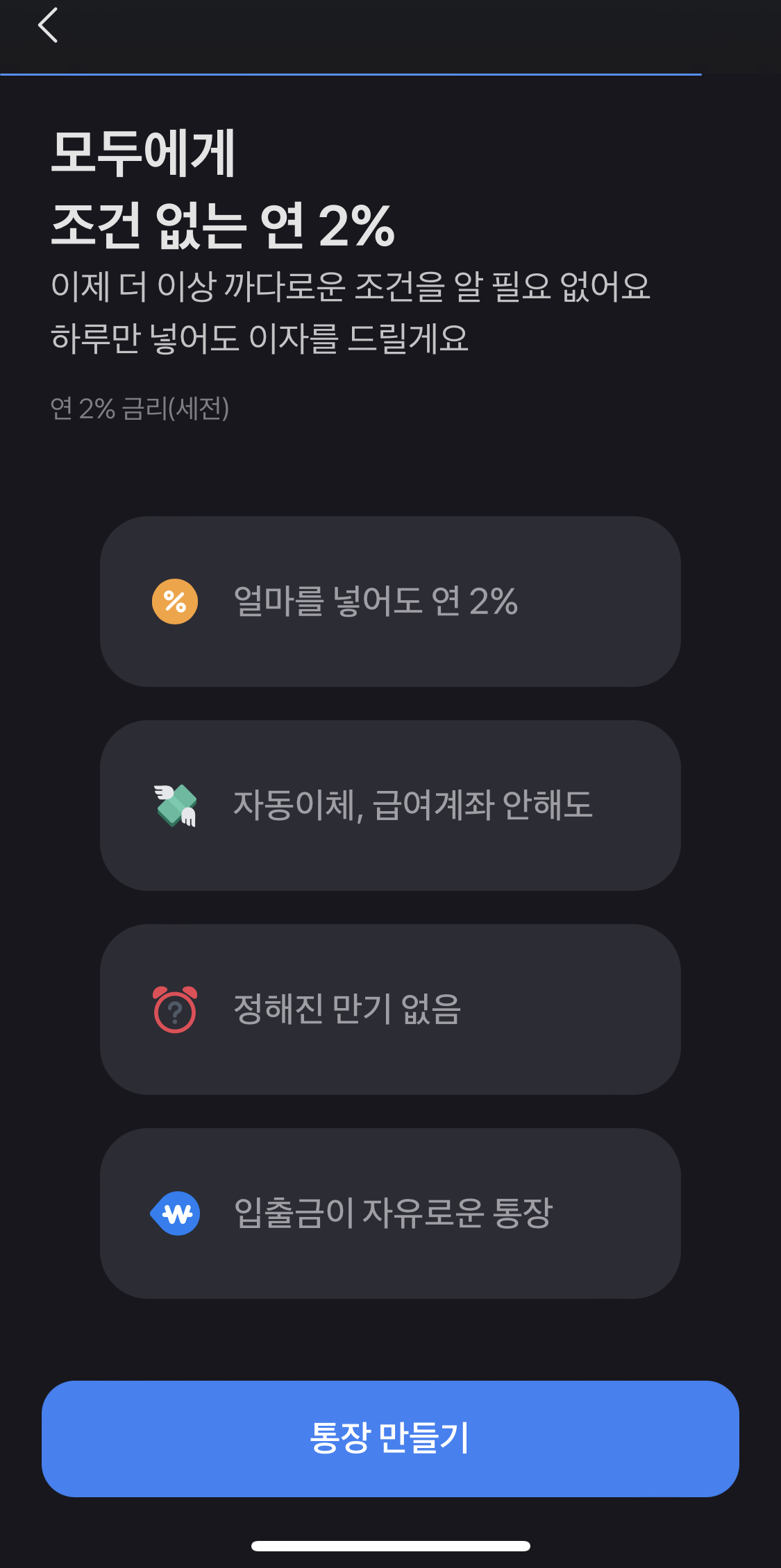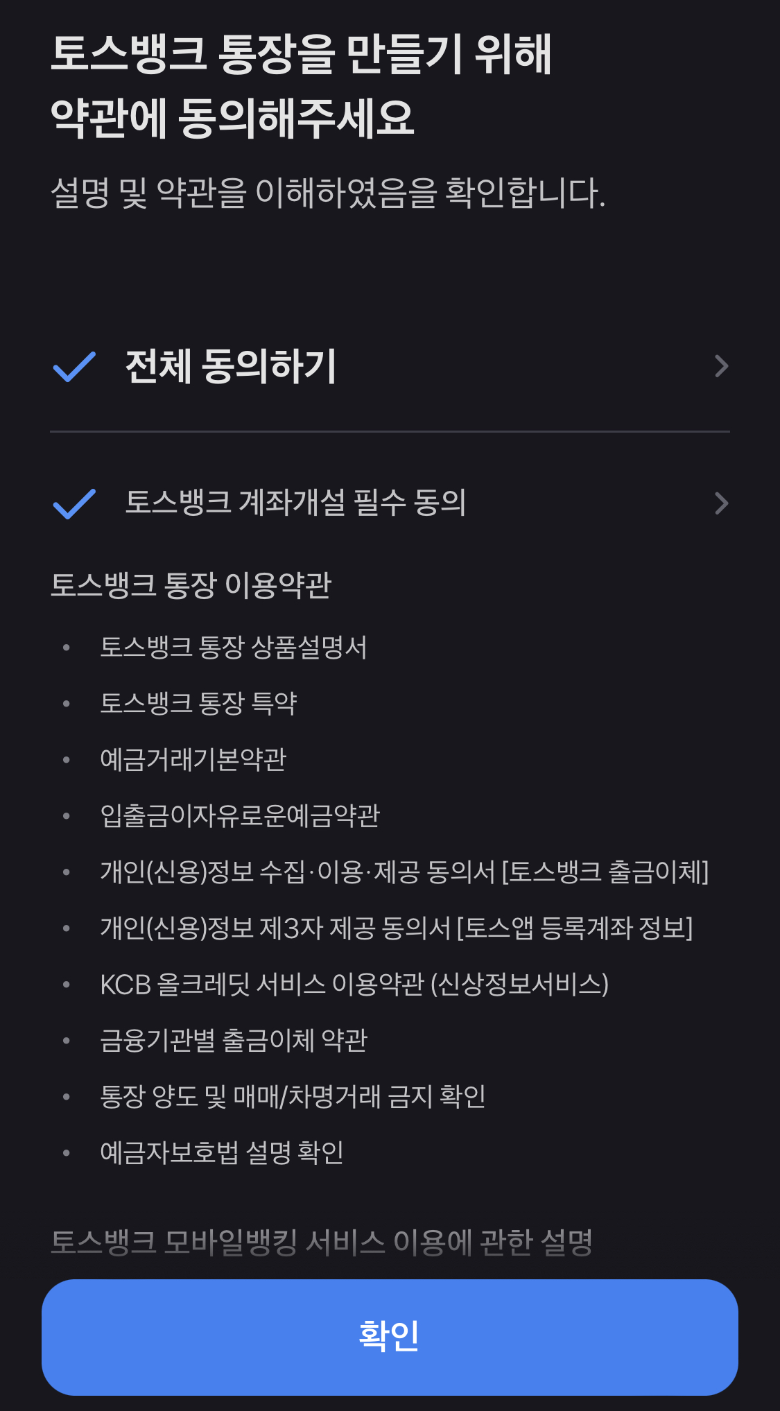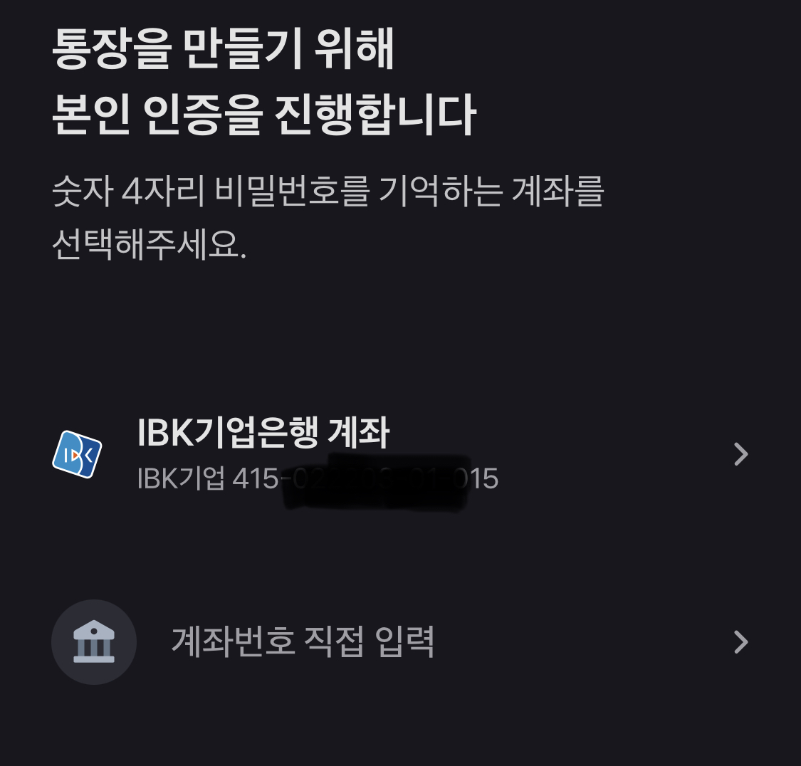 타행 계좌를 통한 본인인증을 하면 통장 개설이 완료됩니다.
