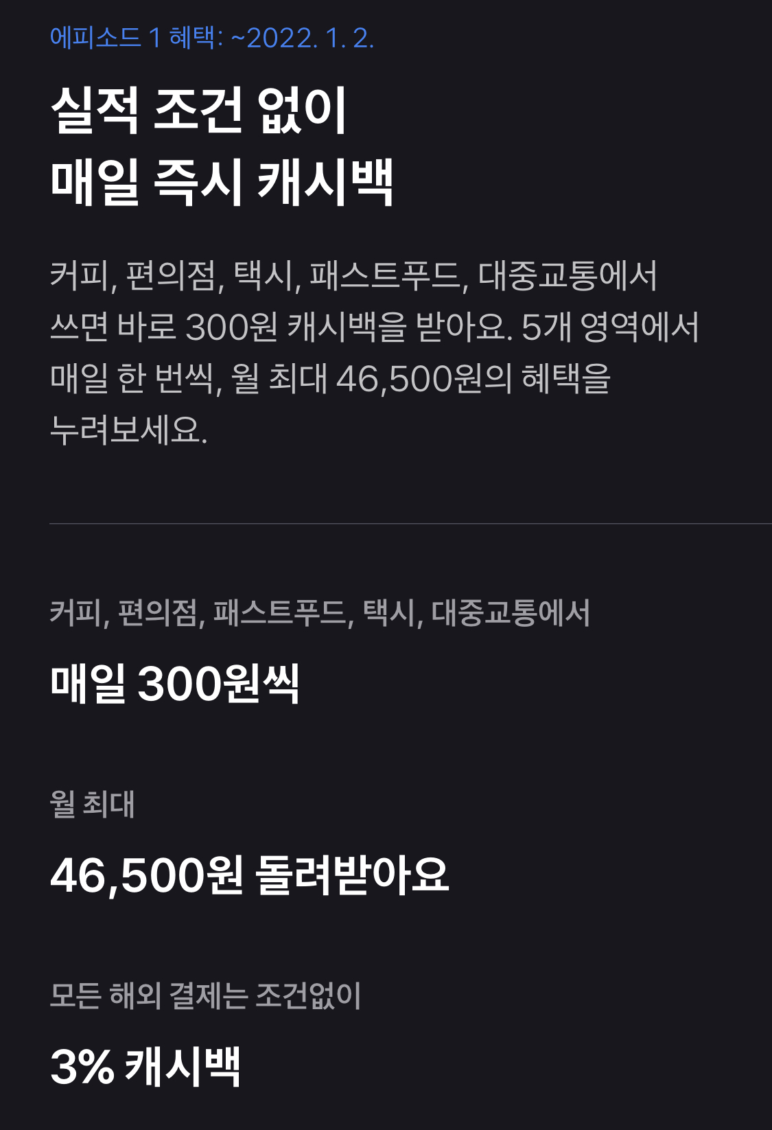 카드 혜택은 내년 (2022년 1월 2일)까지 적용됩니다.
