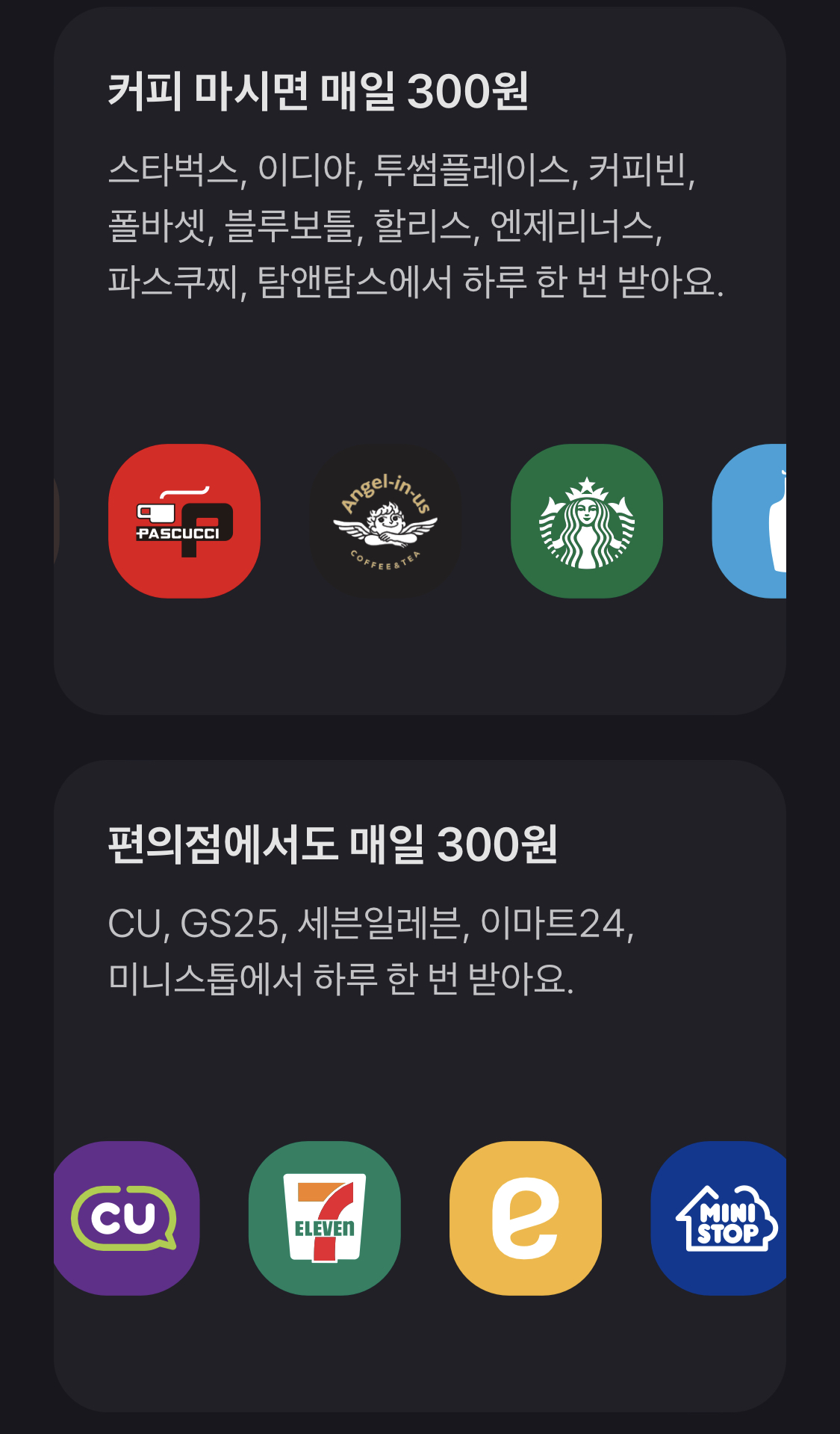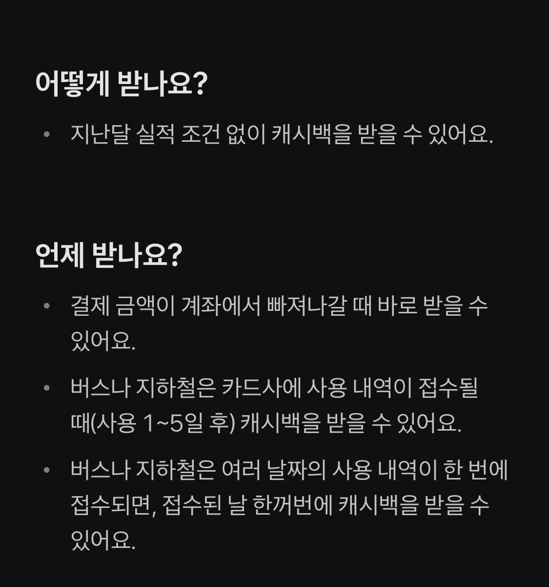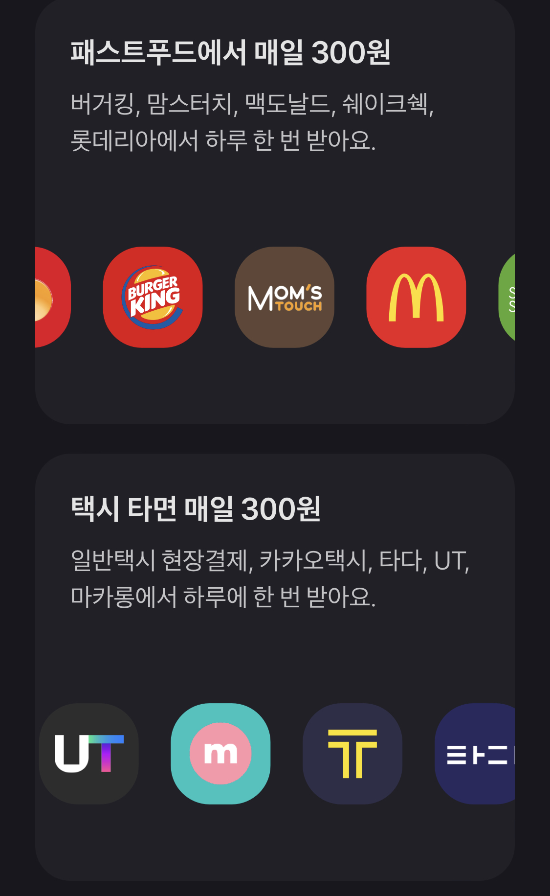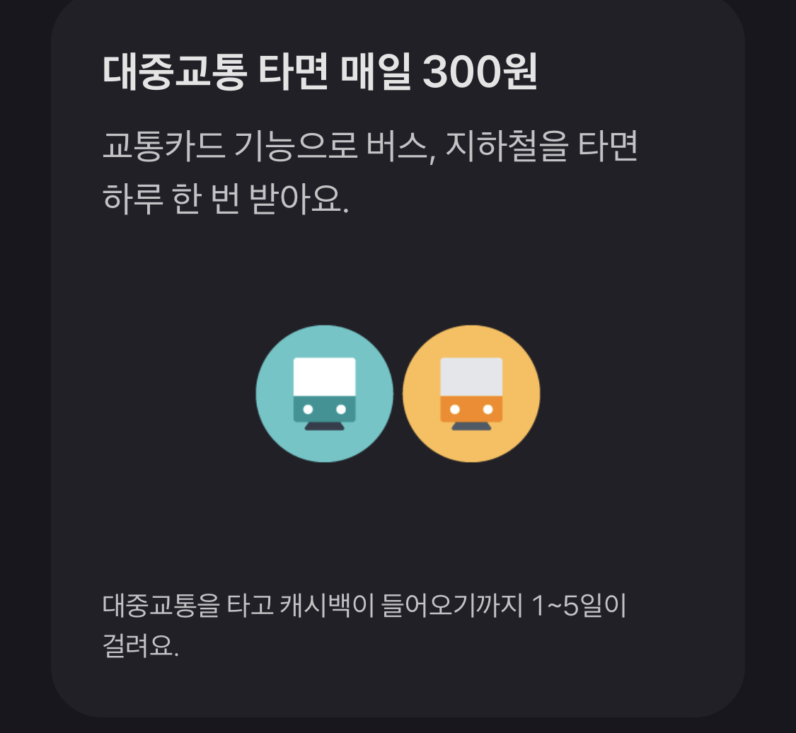 카드사용 시 매일 300원씩 캐시백을 제공합니다.