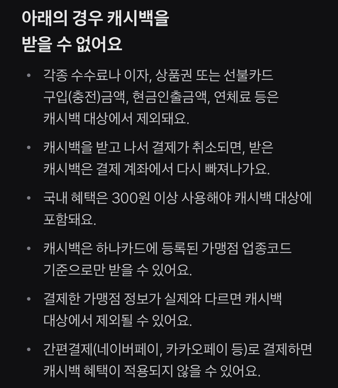 캐시백을 받는 데는 몇 가지 제약사항이 있습니다.