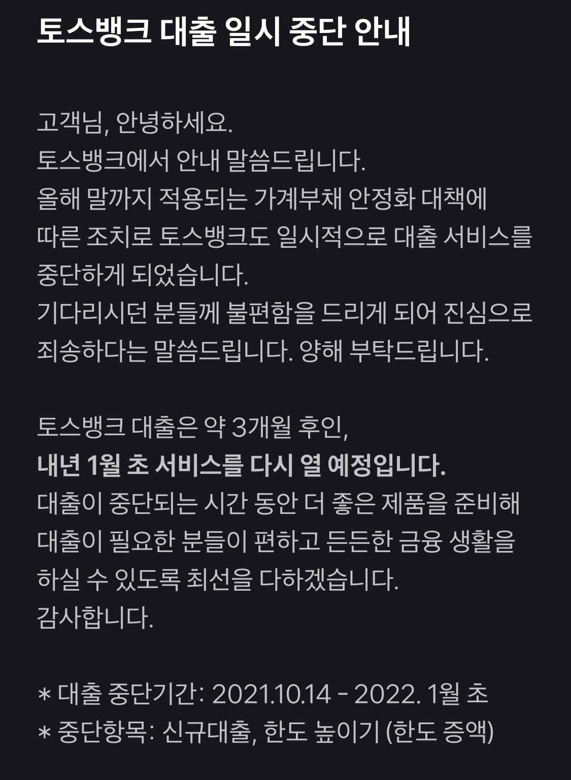 현재(21.10.14) 는 대출 서비스가 중단되었습니다.