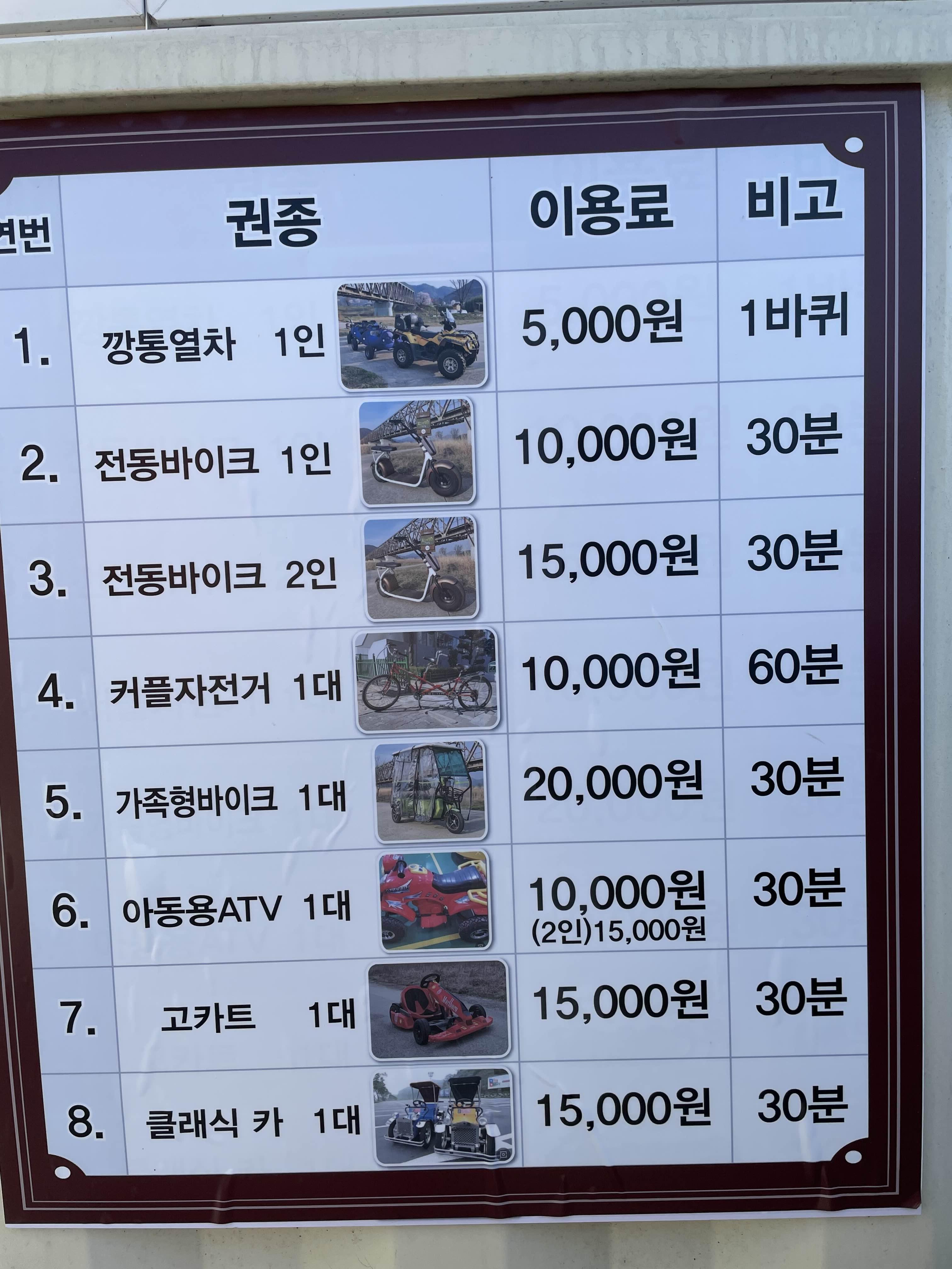가족형 바이크의 경우 약 3대 정도 밖에 없어서 빌리는 것도 힘들었습니다.