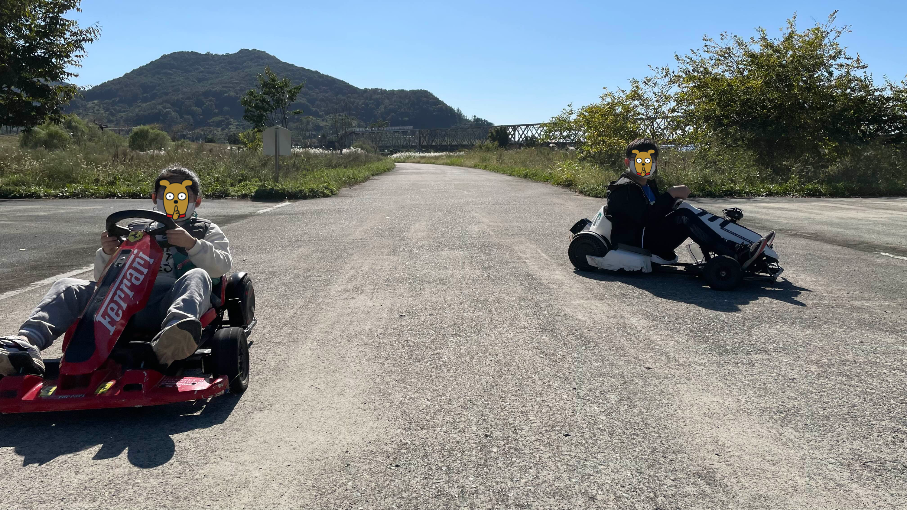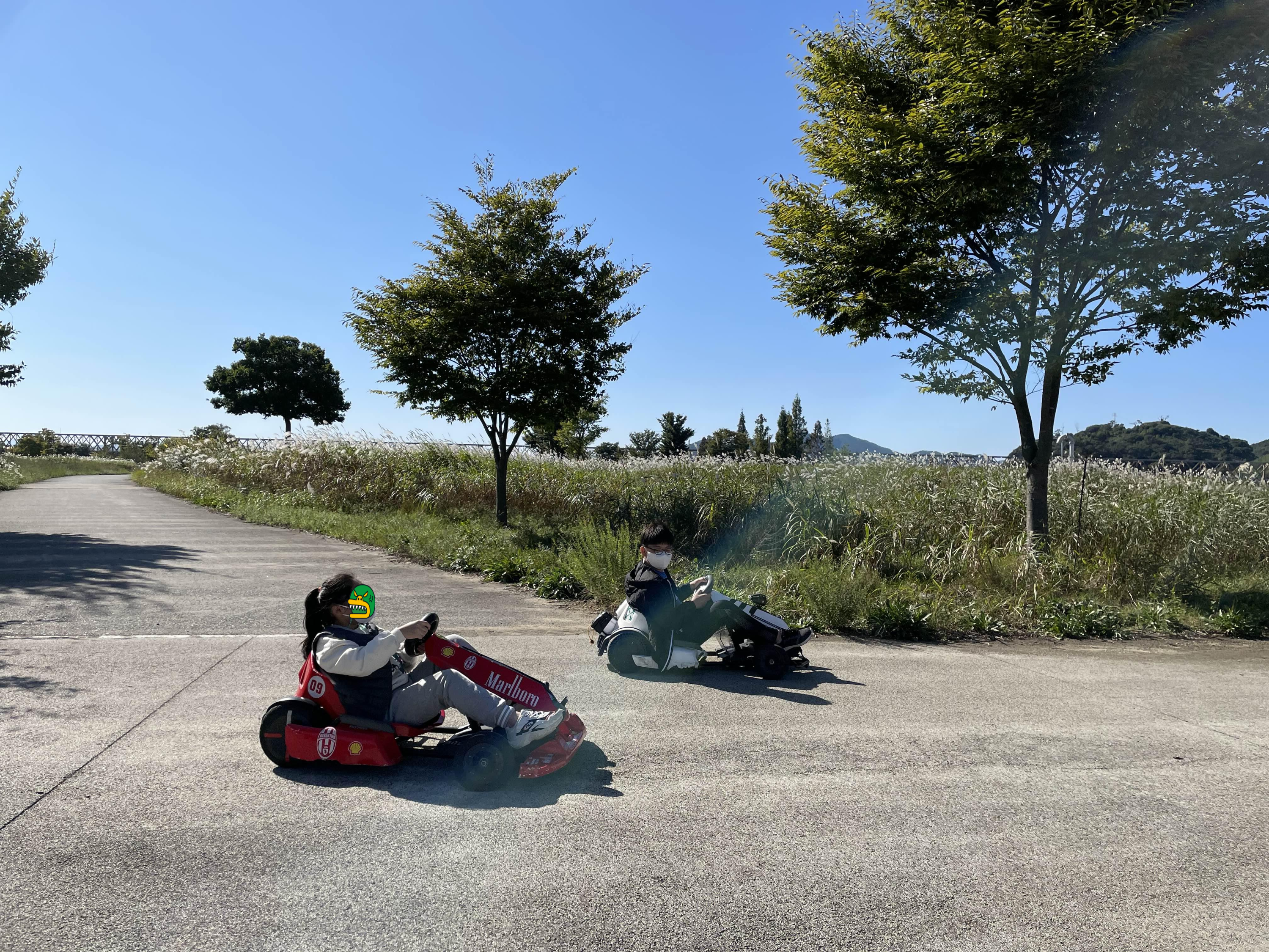 고카트의 경우 아이들의 안전을 위해 속도 제한이 걸려 있어 그리 빠르지 않습니다.
