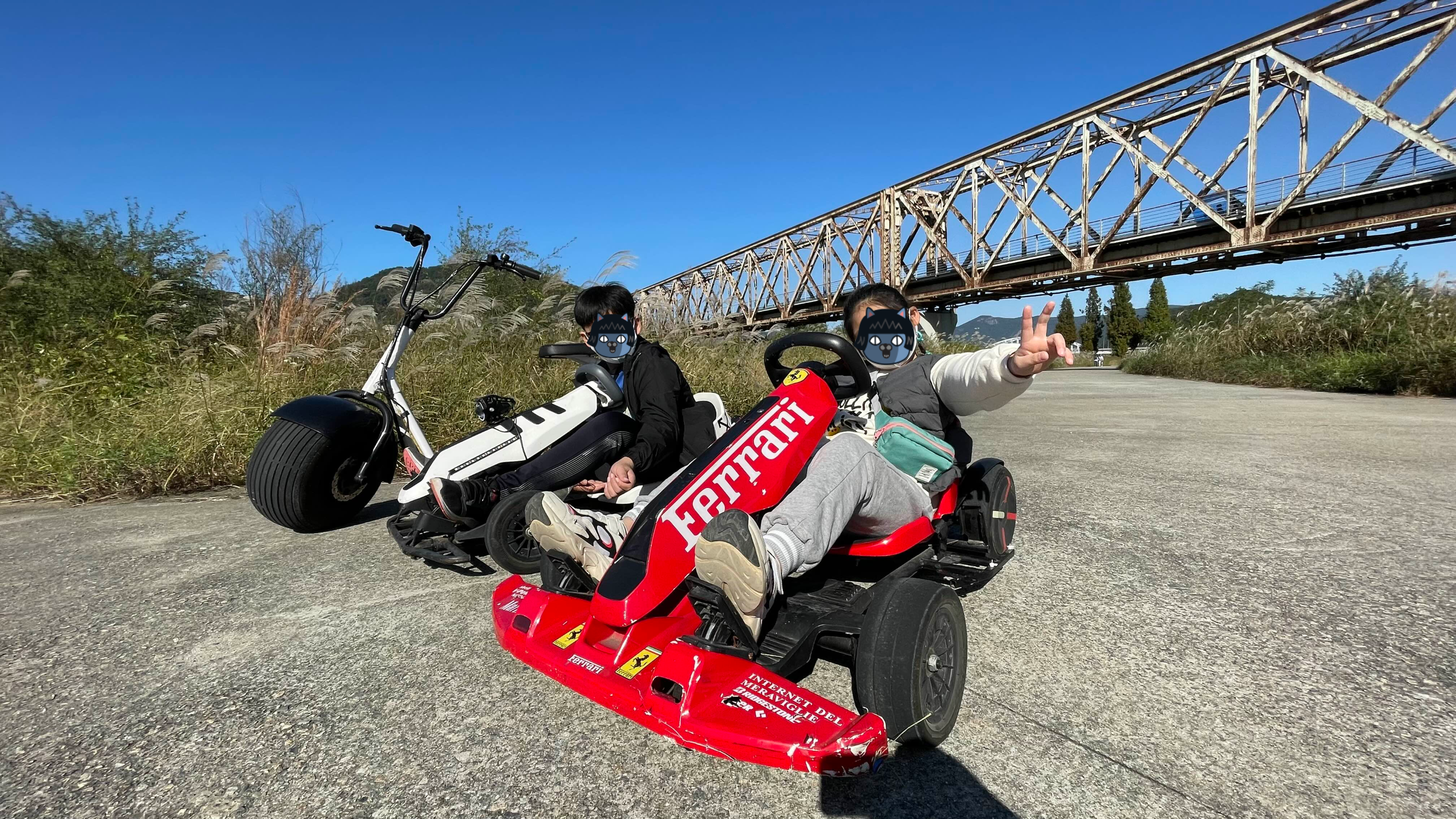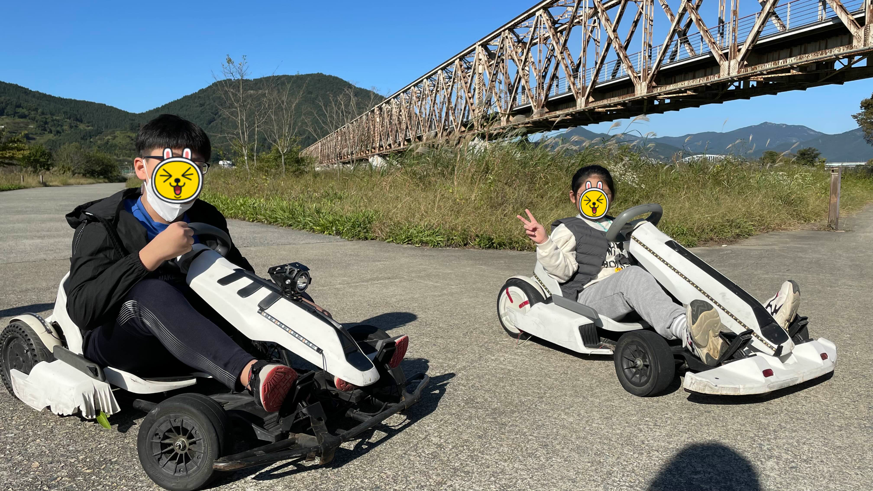 아이 둘, 어른 셋이라 아이들은 고카트를 2대를 대여하고