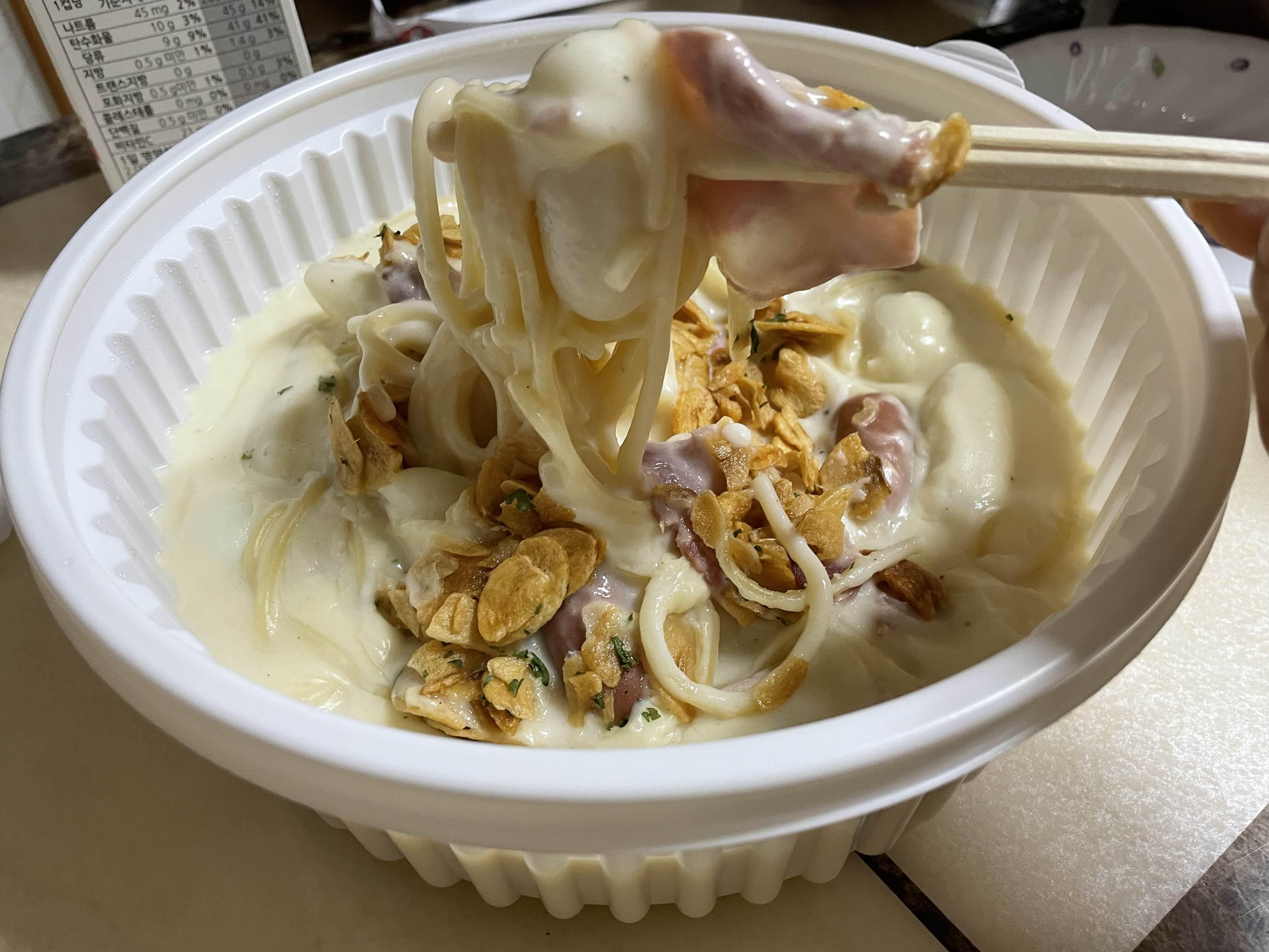 스파게티면을 집어서 먹어보니 그냥 크림 스파게티였습니다.