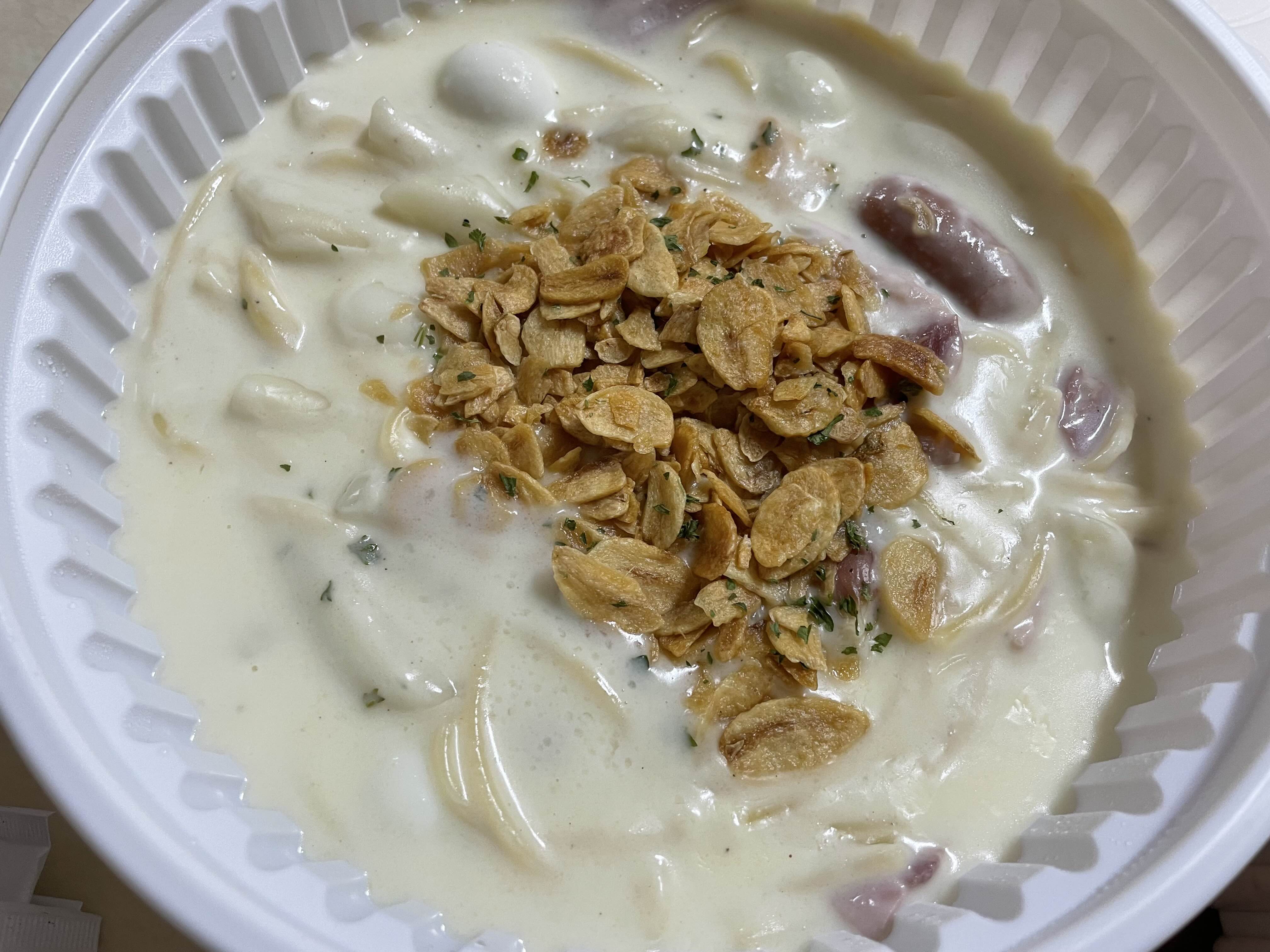 위에 있는 재료는 후레이크인줄 알았는데, 튀긴마늘로 풍미를 더했습니다.