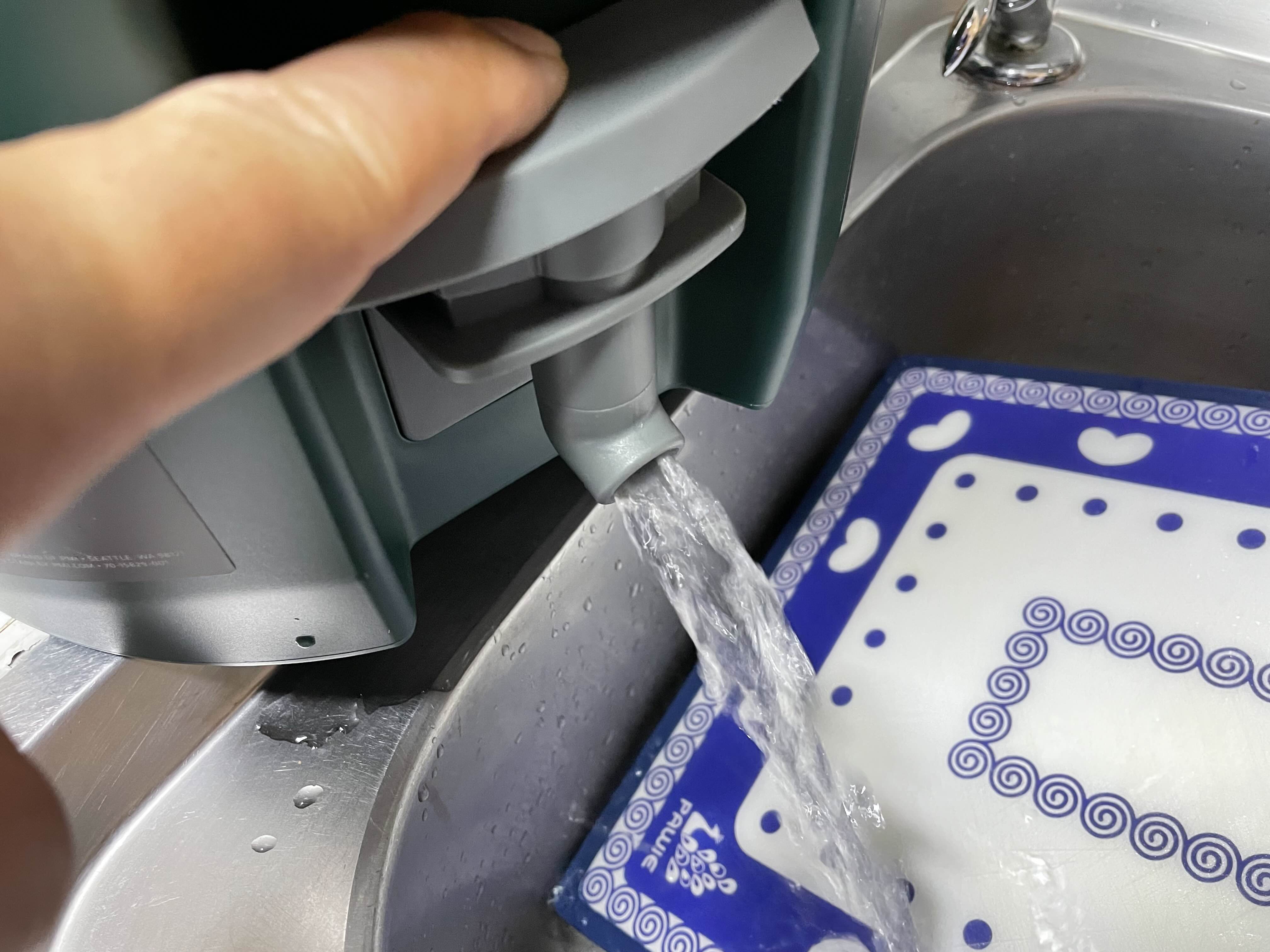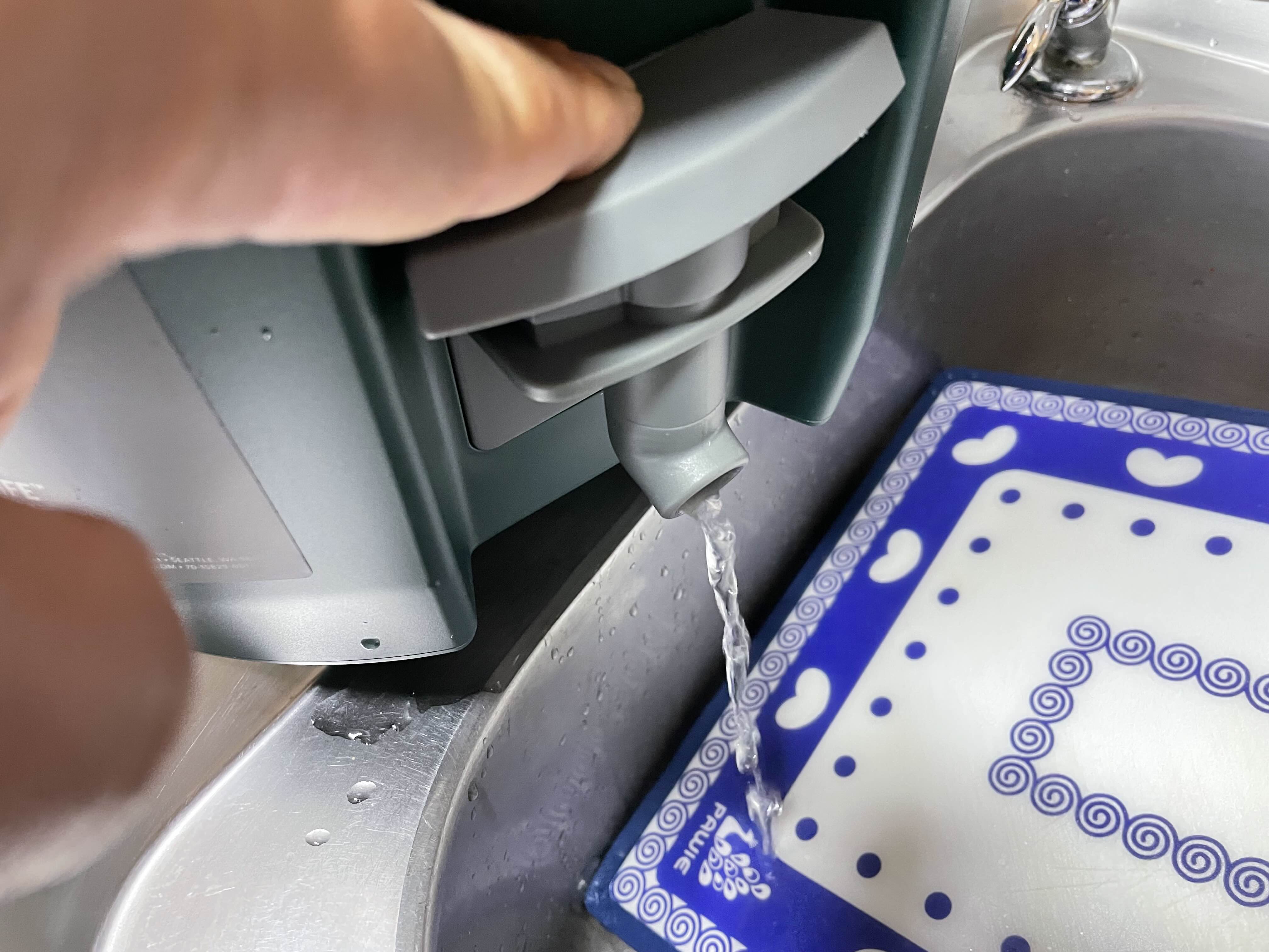 물 배출구는 위를 누르면 물이 나오는 방식인데요.