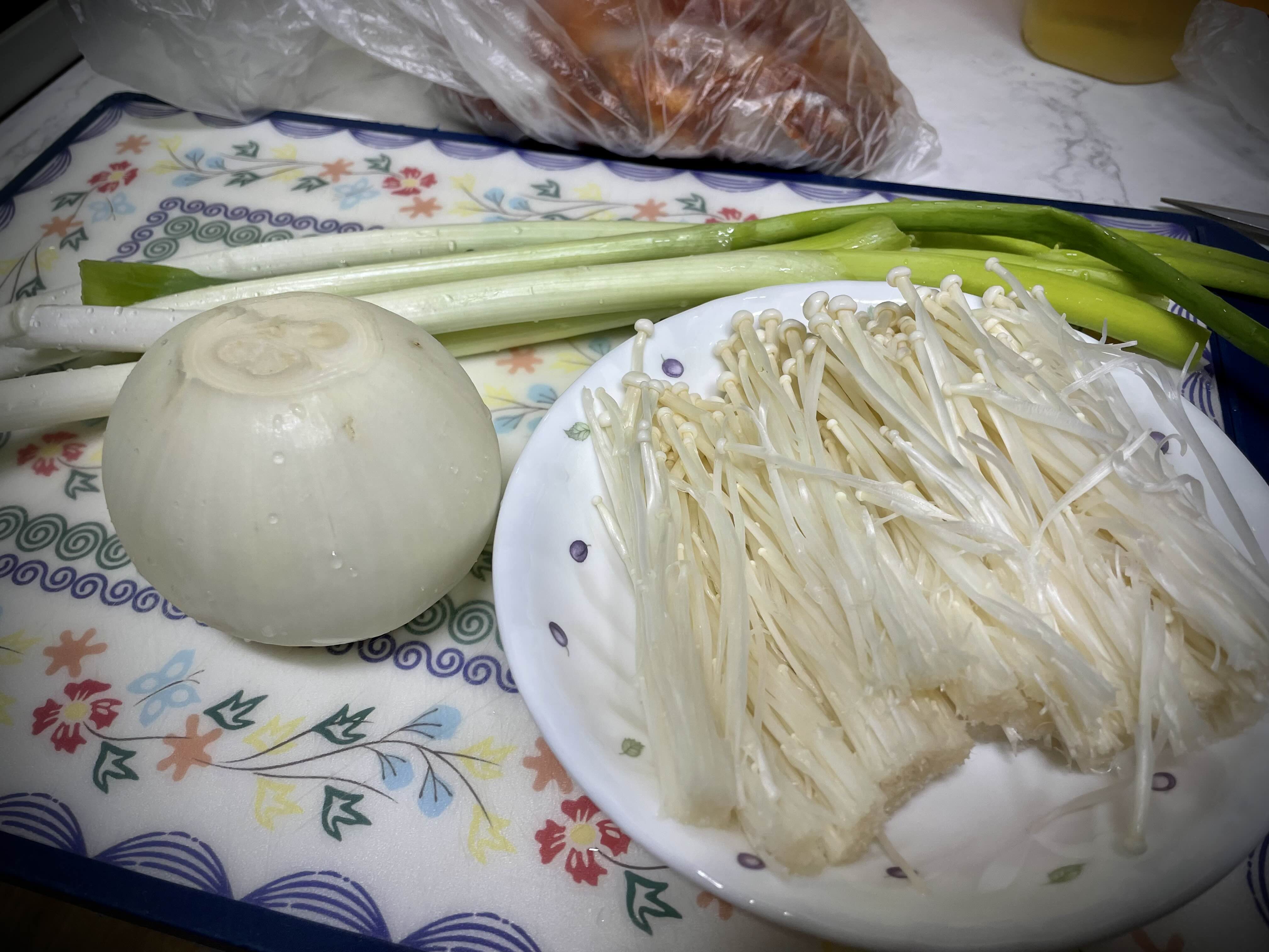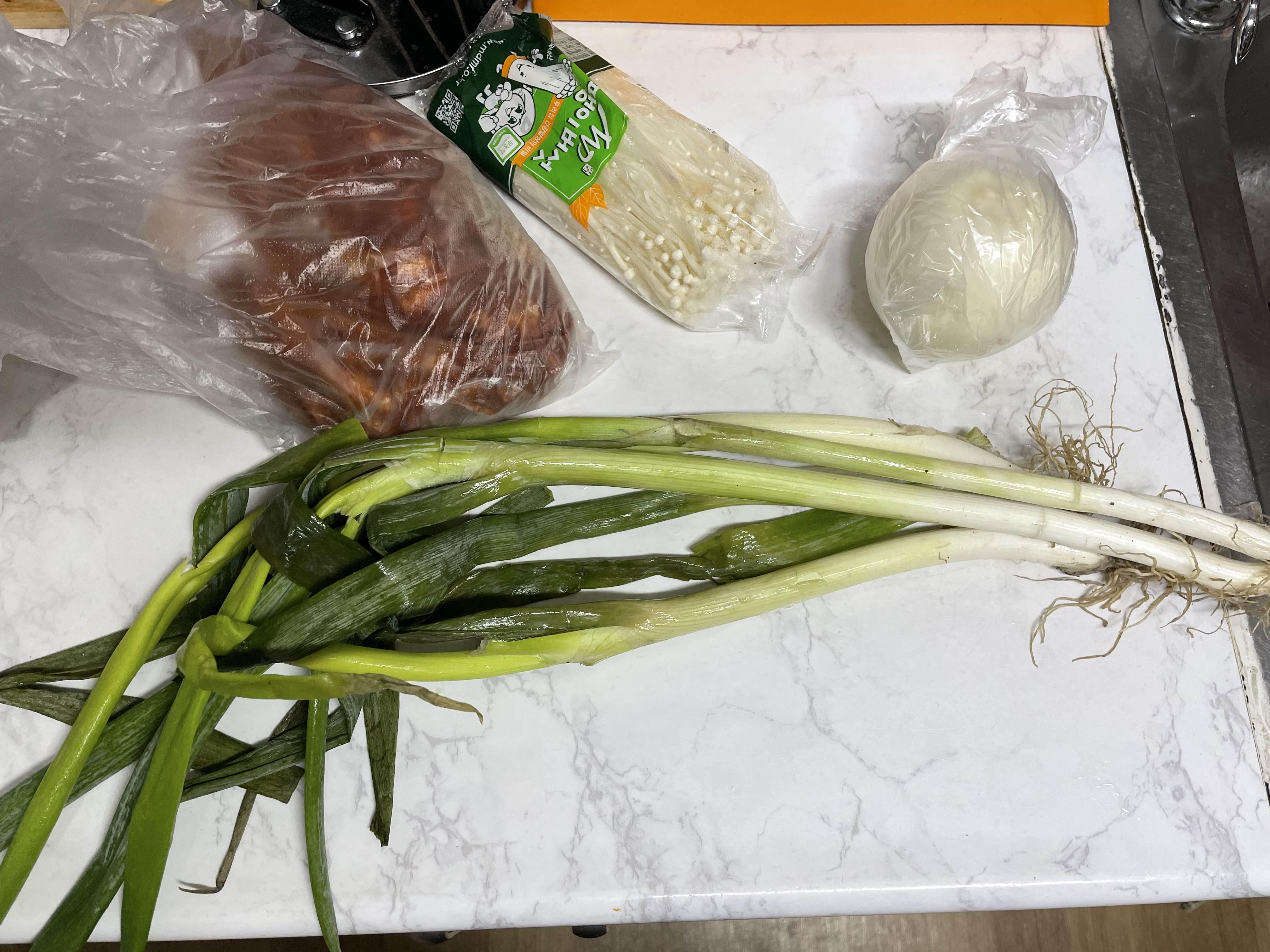 팽이버섯과 양파도 준비했습니다.