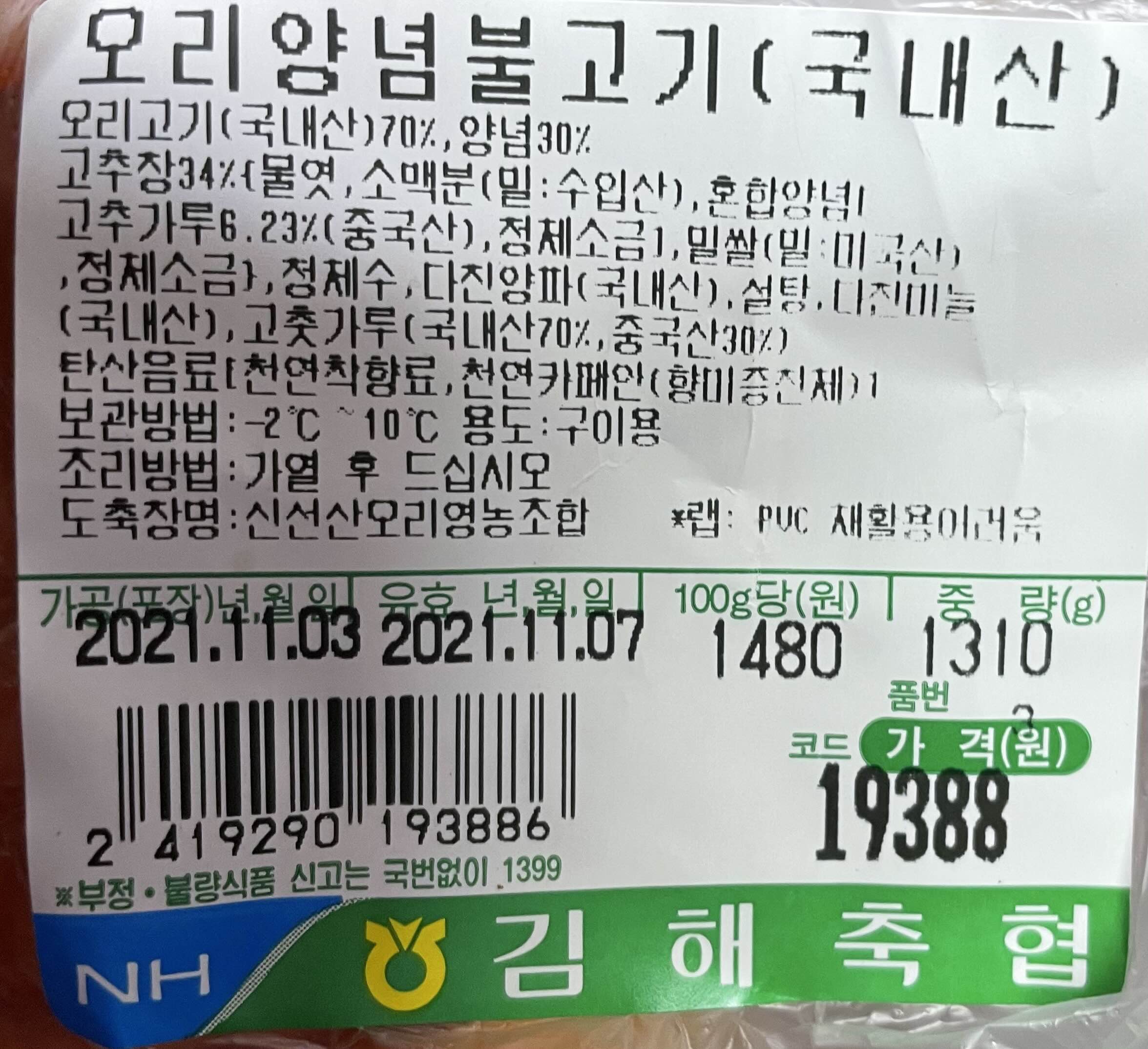 100g 에 1,480원