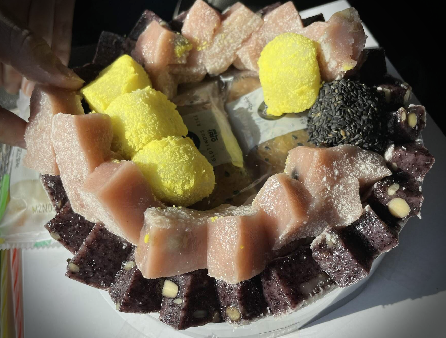열심히 먹다보면 아래쪽에는 개별 포장된 떡이 나오는데요.