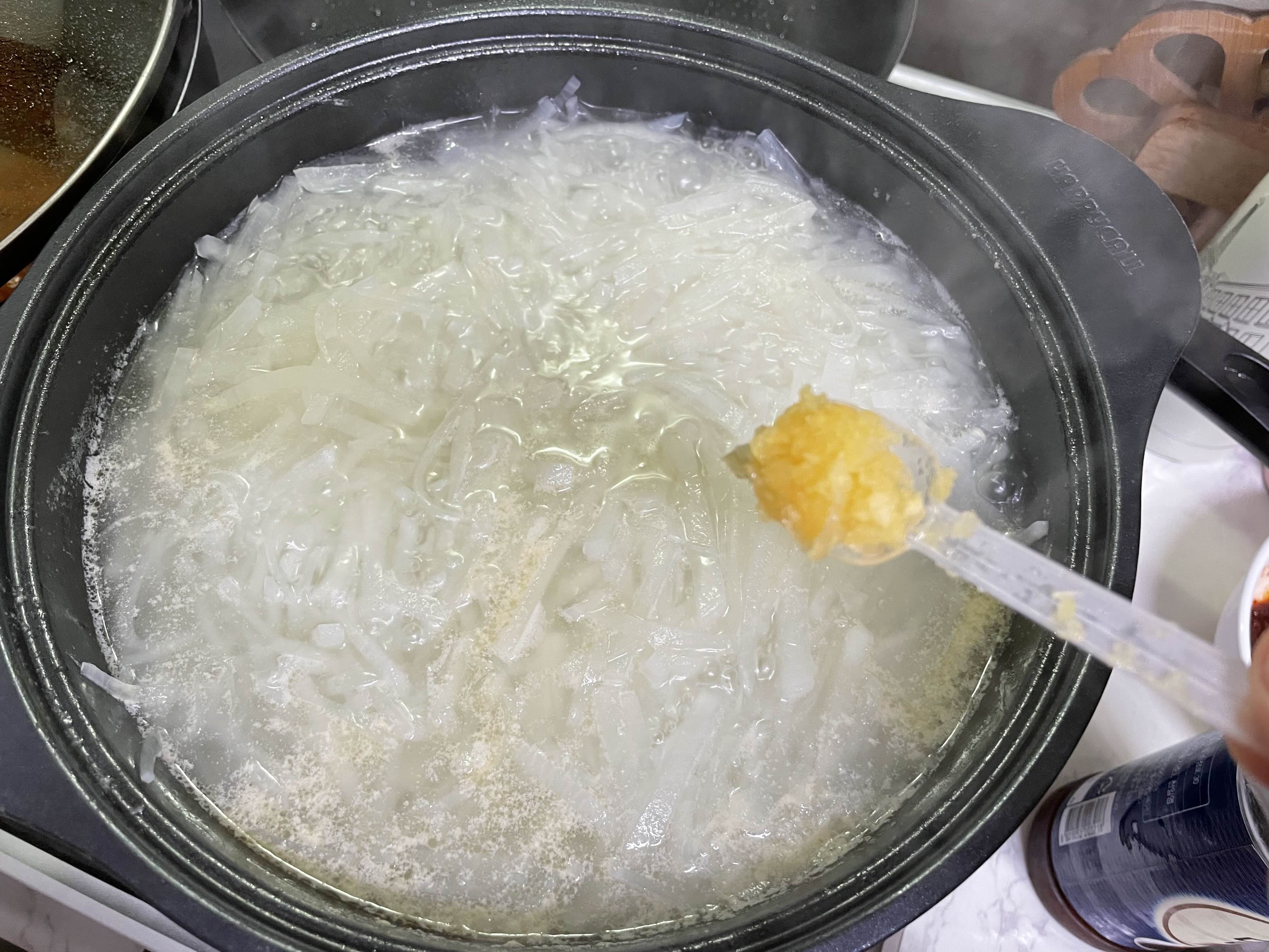 배춧국 다 먹고 무채국을 끓여 보았습니다.