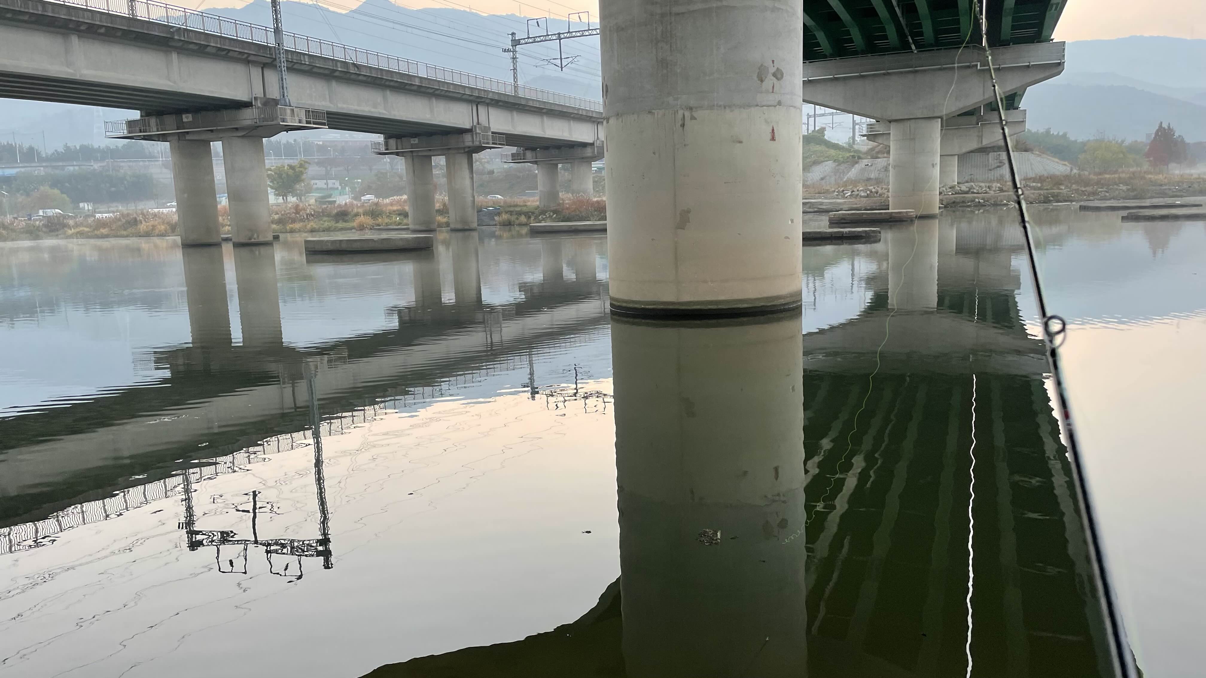 교각 근처에서 던져보다 아무런 소득이 없어 하류쪽으로 좀 더 내려와 보았습니다.