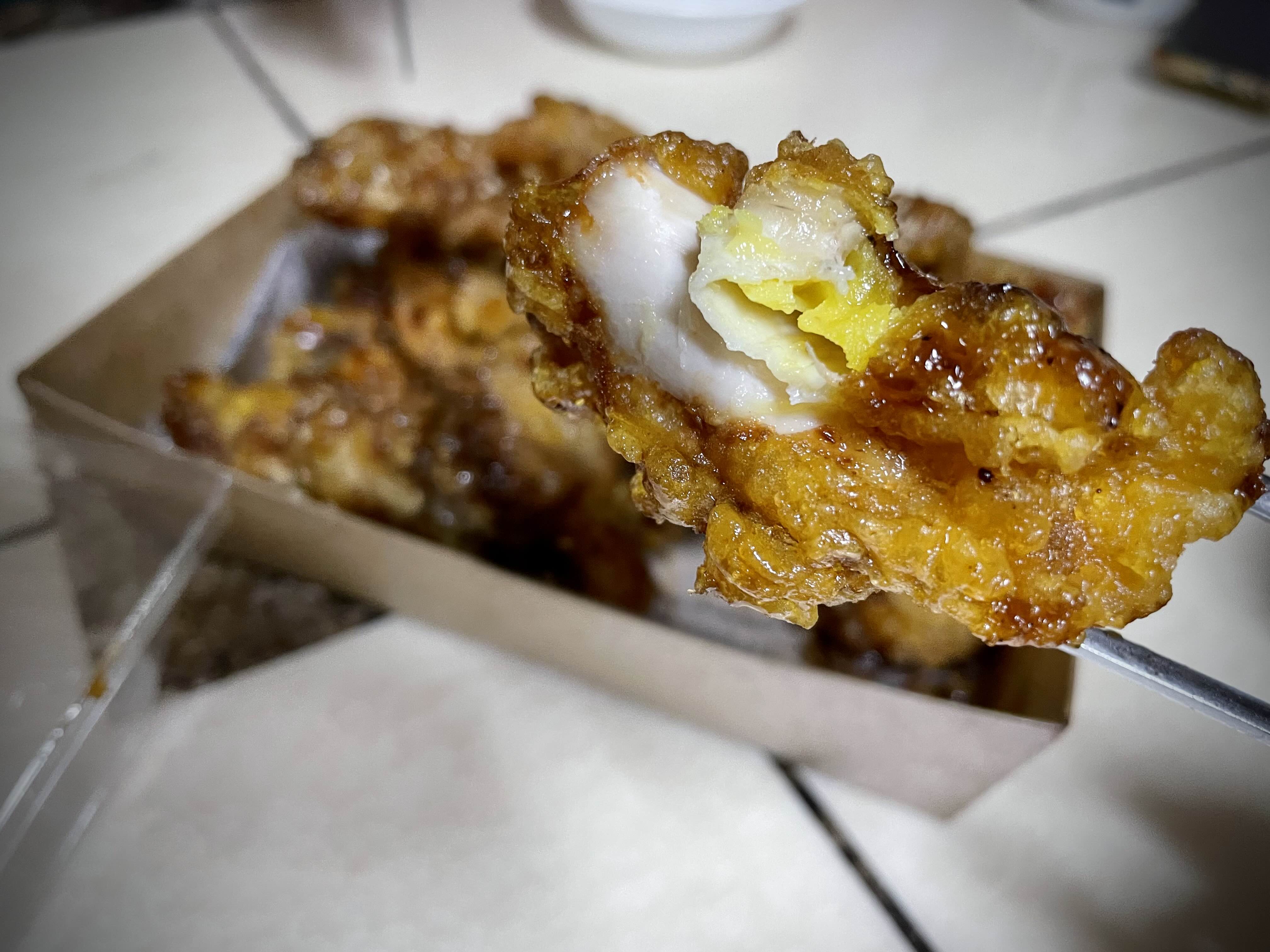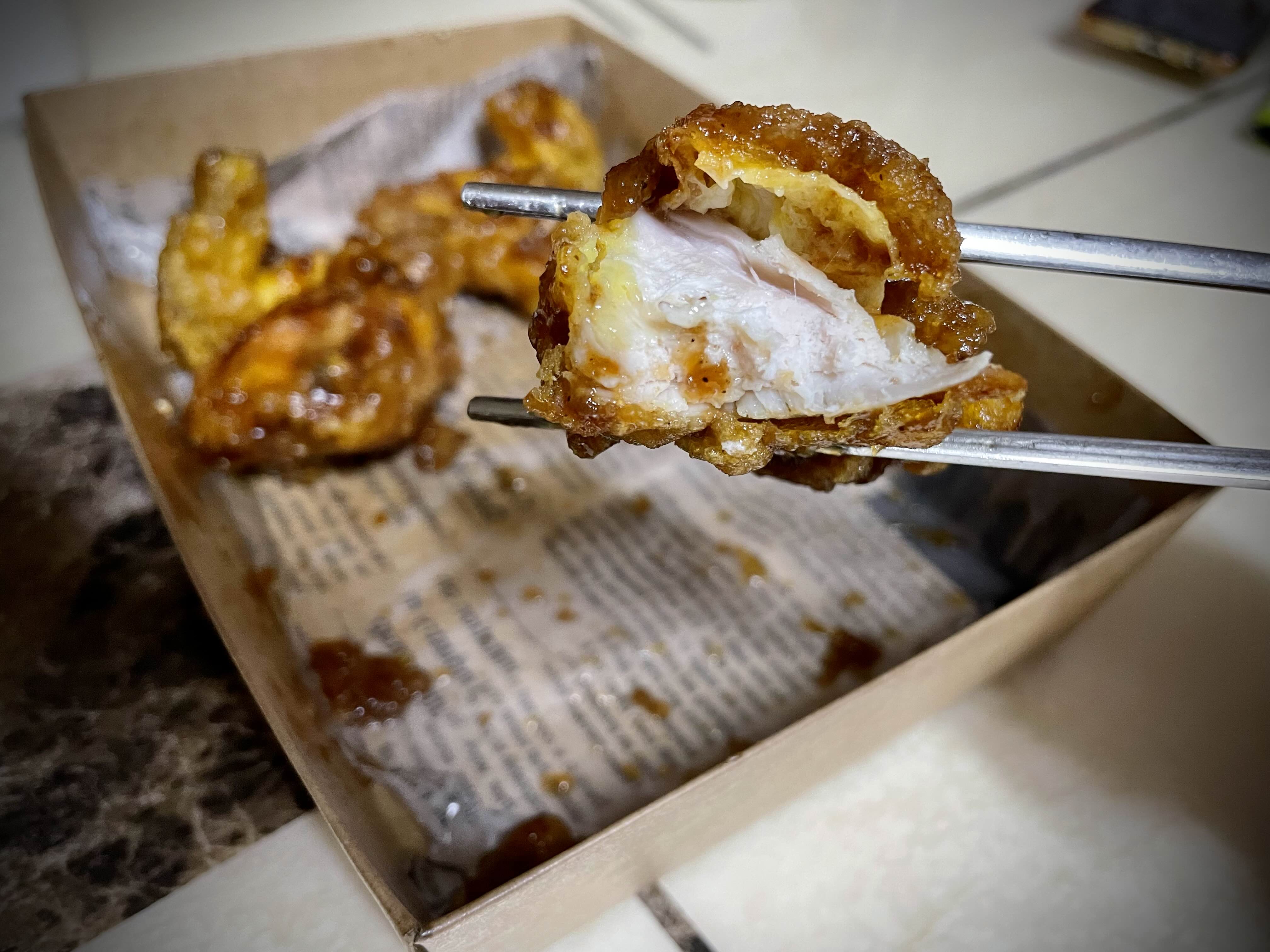 튀김옷의 두께는 적당했는데 튀김과 살 사이에 공간이 좀 보이고,