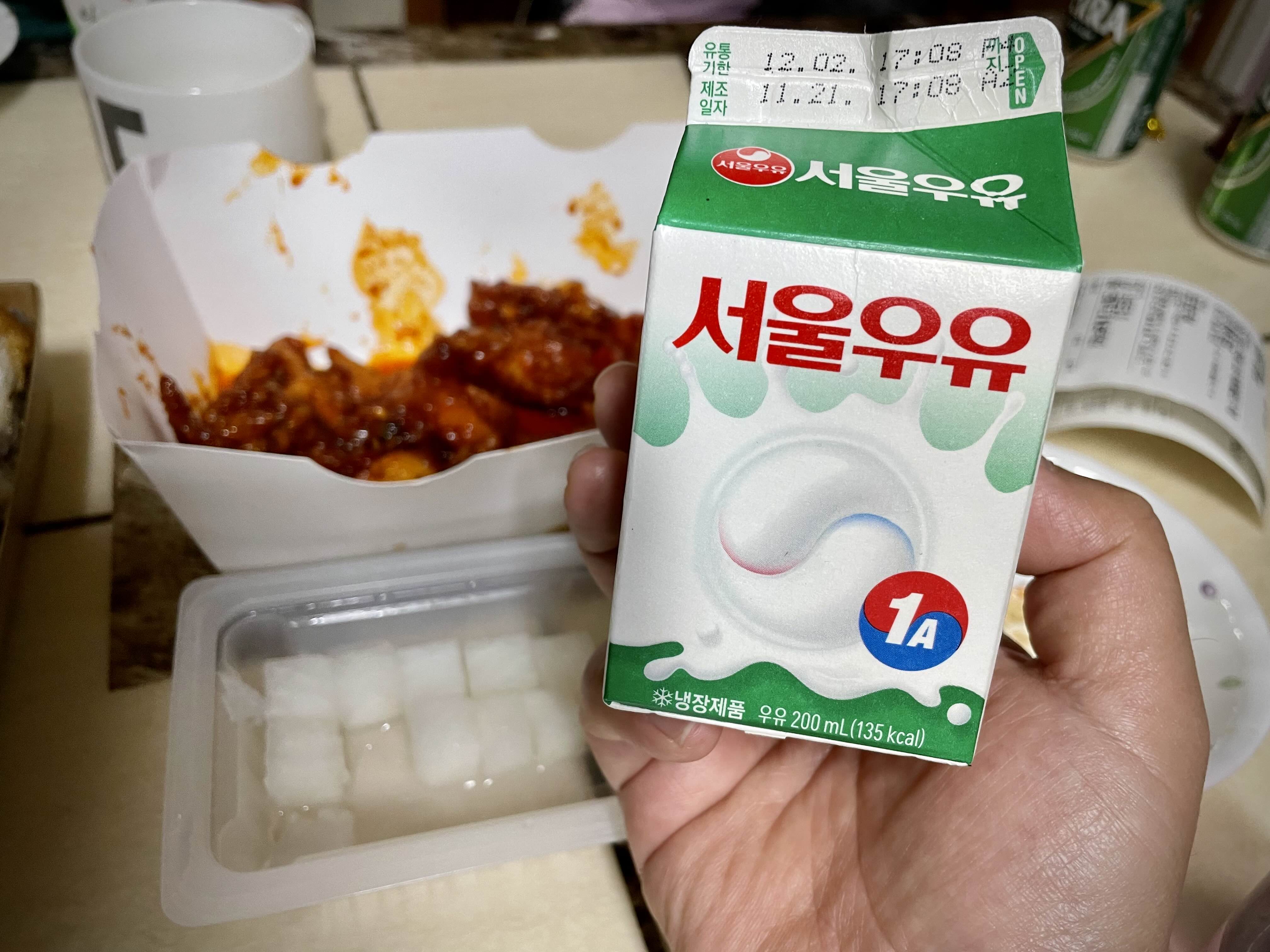 매운 거 못 먹는 맵찔이들을 위해 우유를 하나씩 뜯어주고,