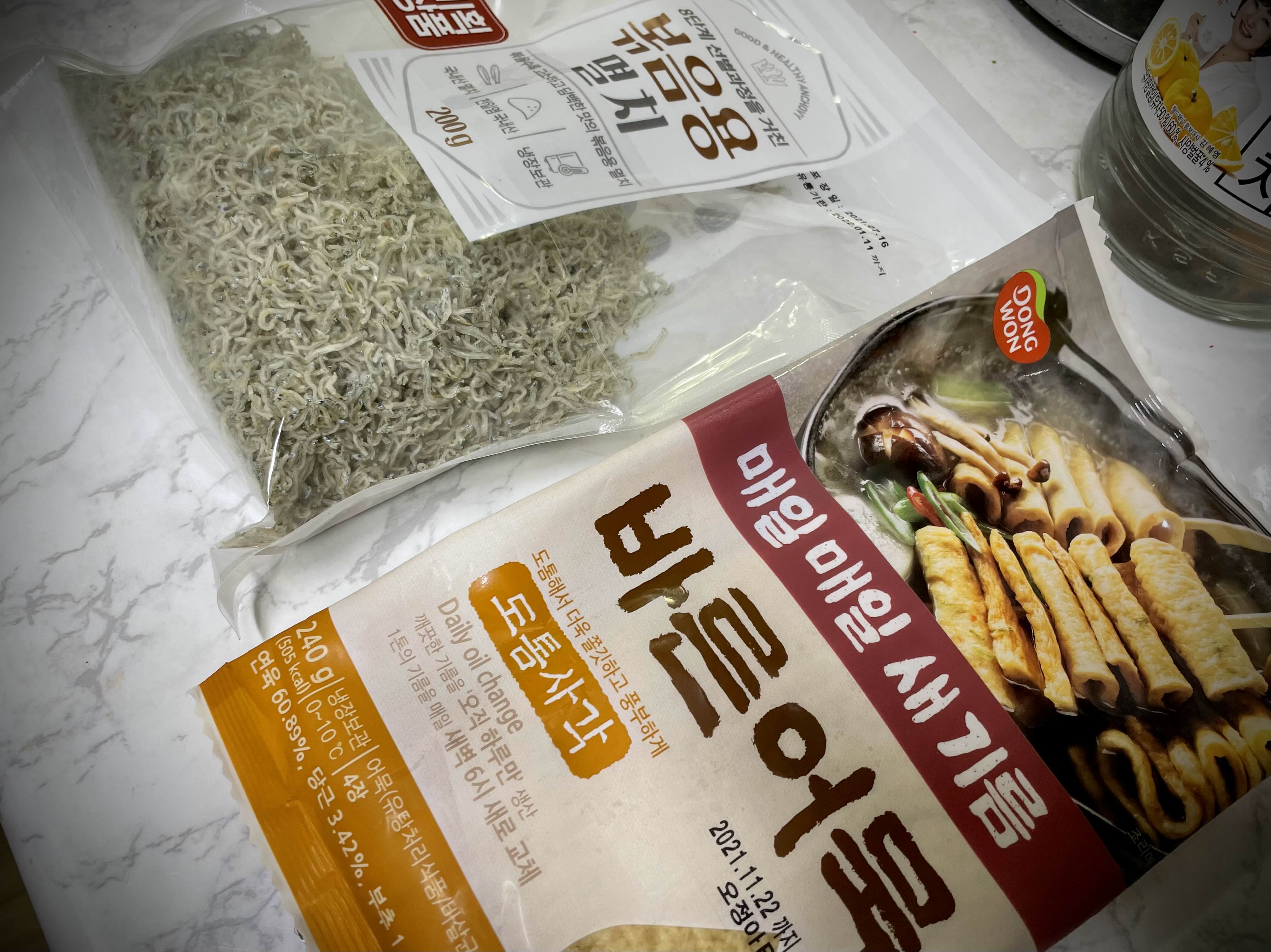 냉장고를 열어보았더니 어묵과 멸치가 딱! 보입니다.