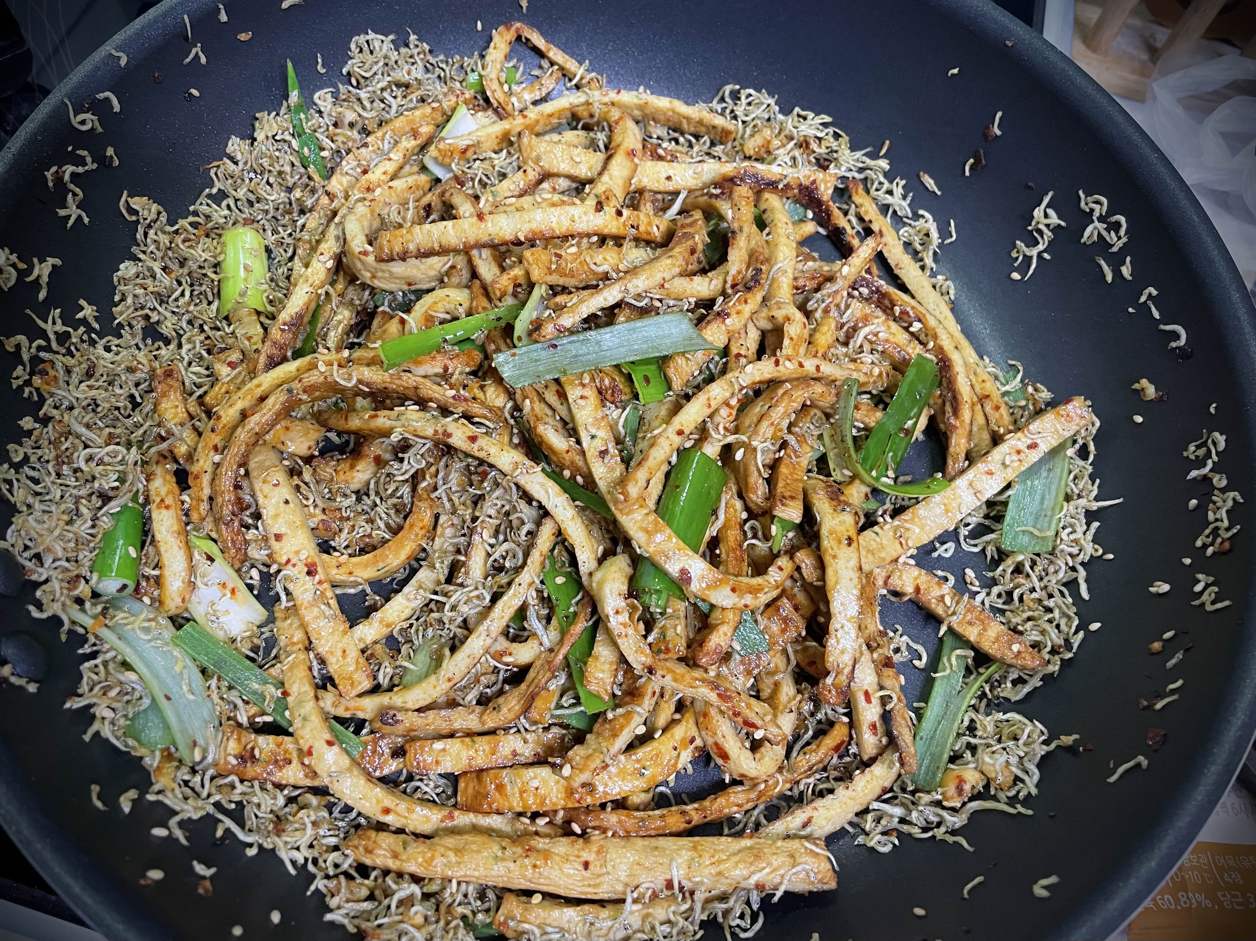 예전에 볶아먹고 남은 잔멸치와 함께 어묵볶음을 만들어 보았습니다.