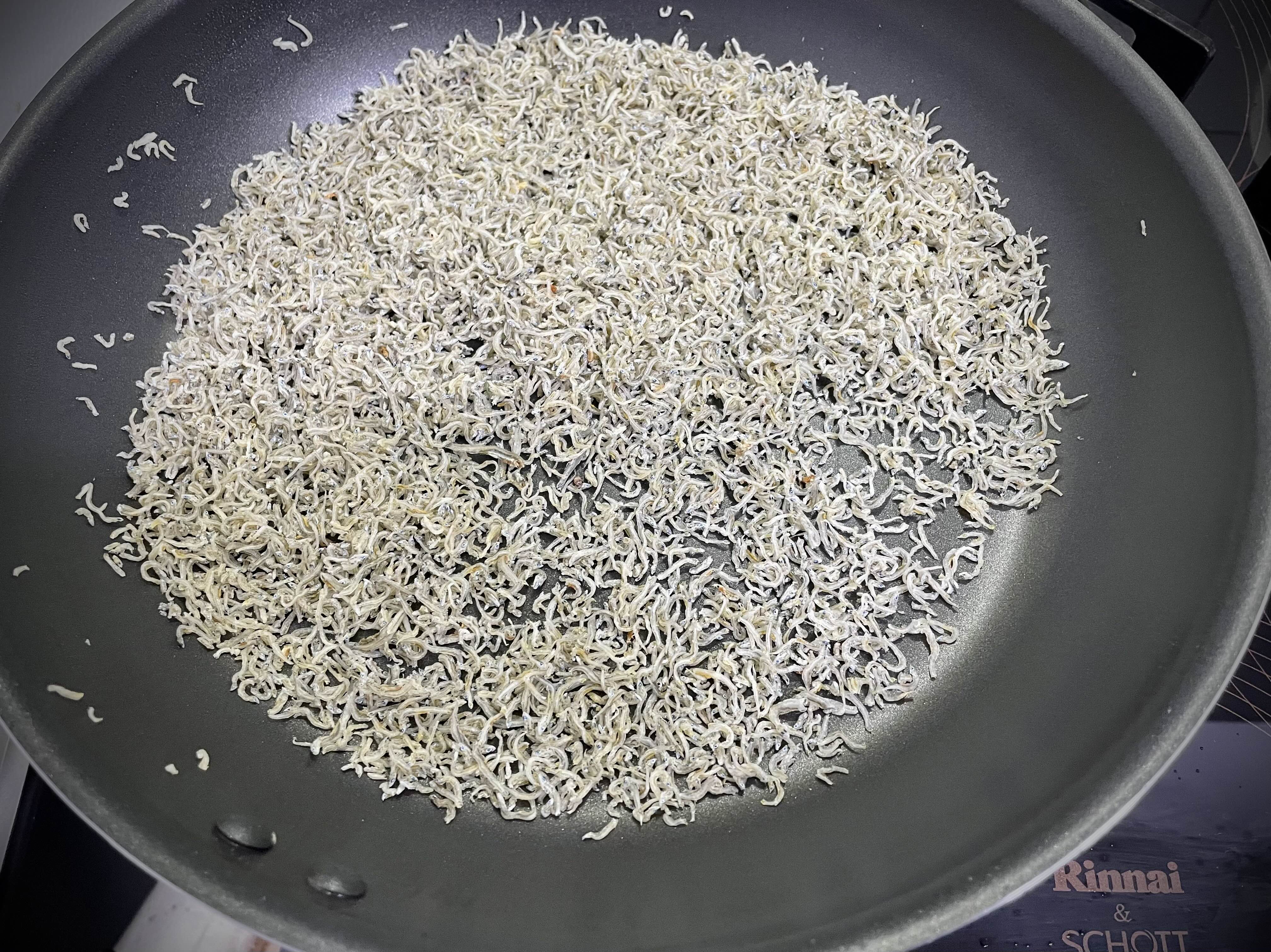 1. 먼저 마른팬에 멸치를 넣고 약한 불로 가볍게 볶아 줍니다.