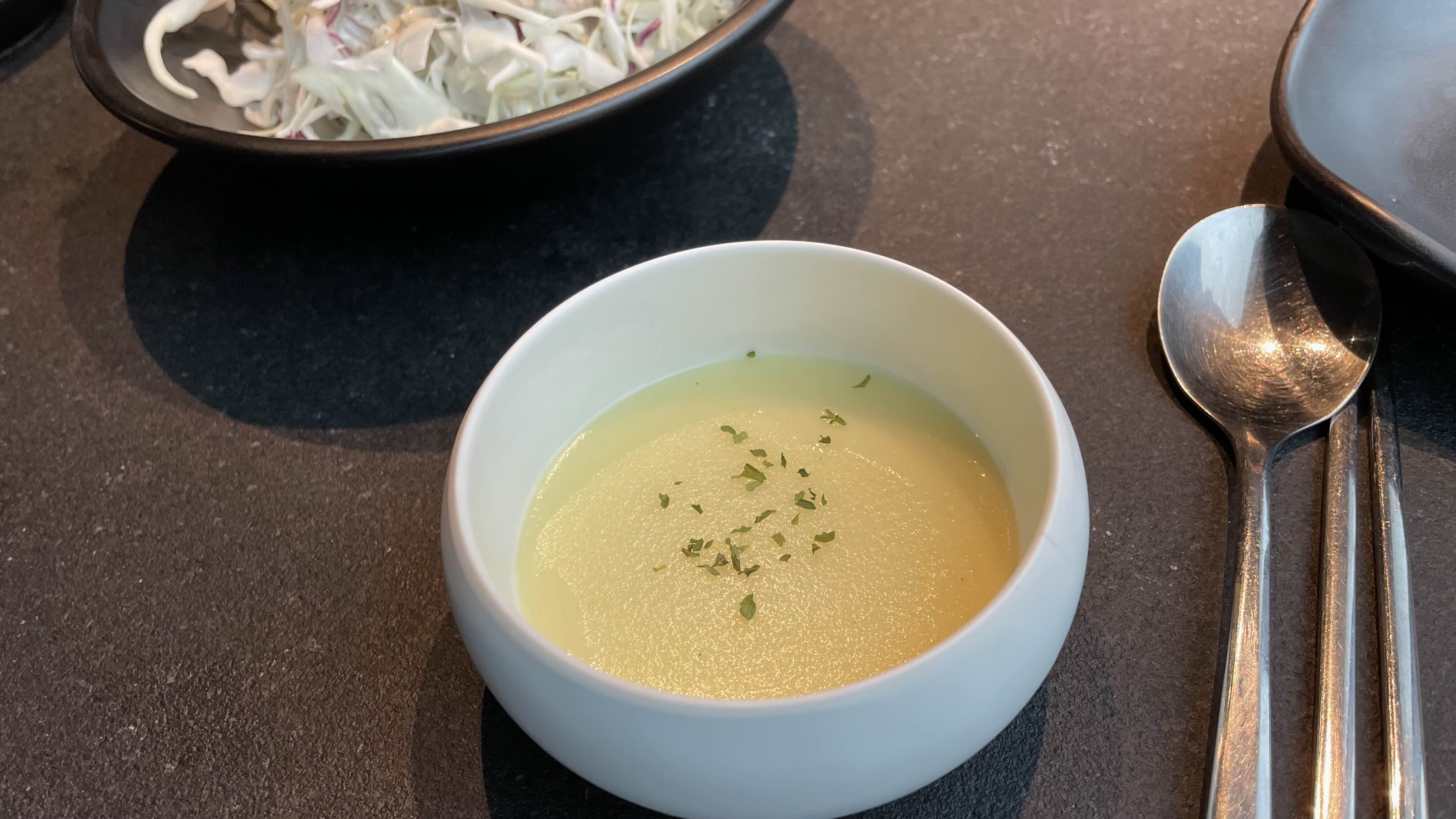 식전 스프와 반찬이 먼저 세팅되었는데요.