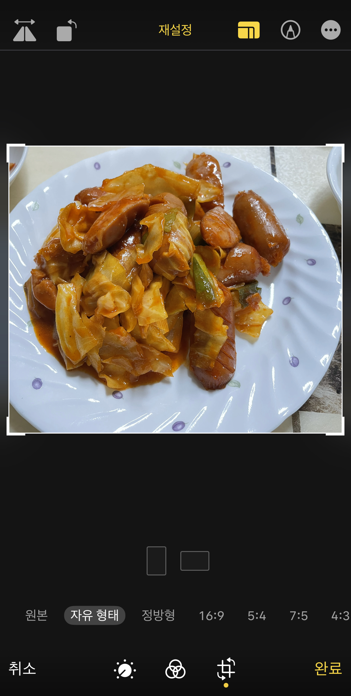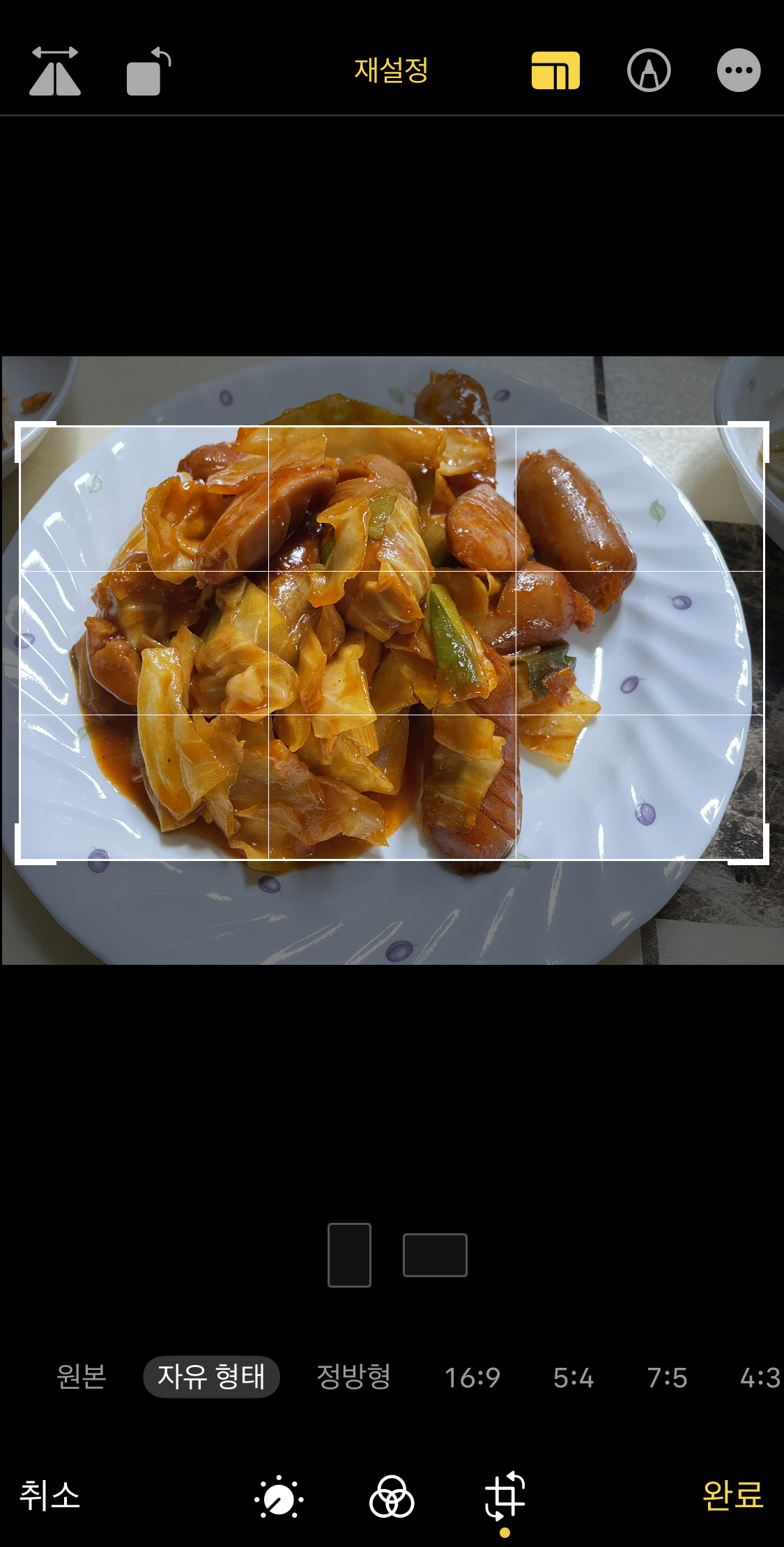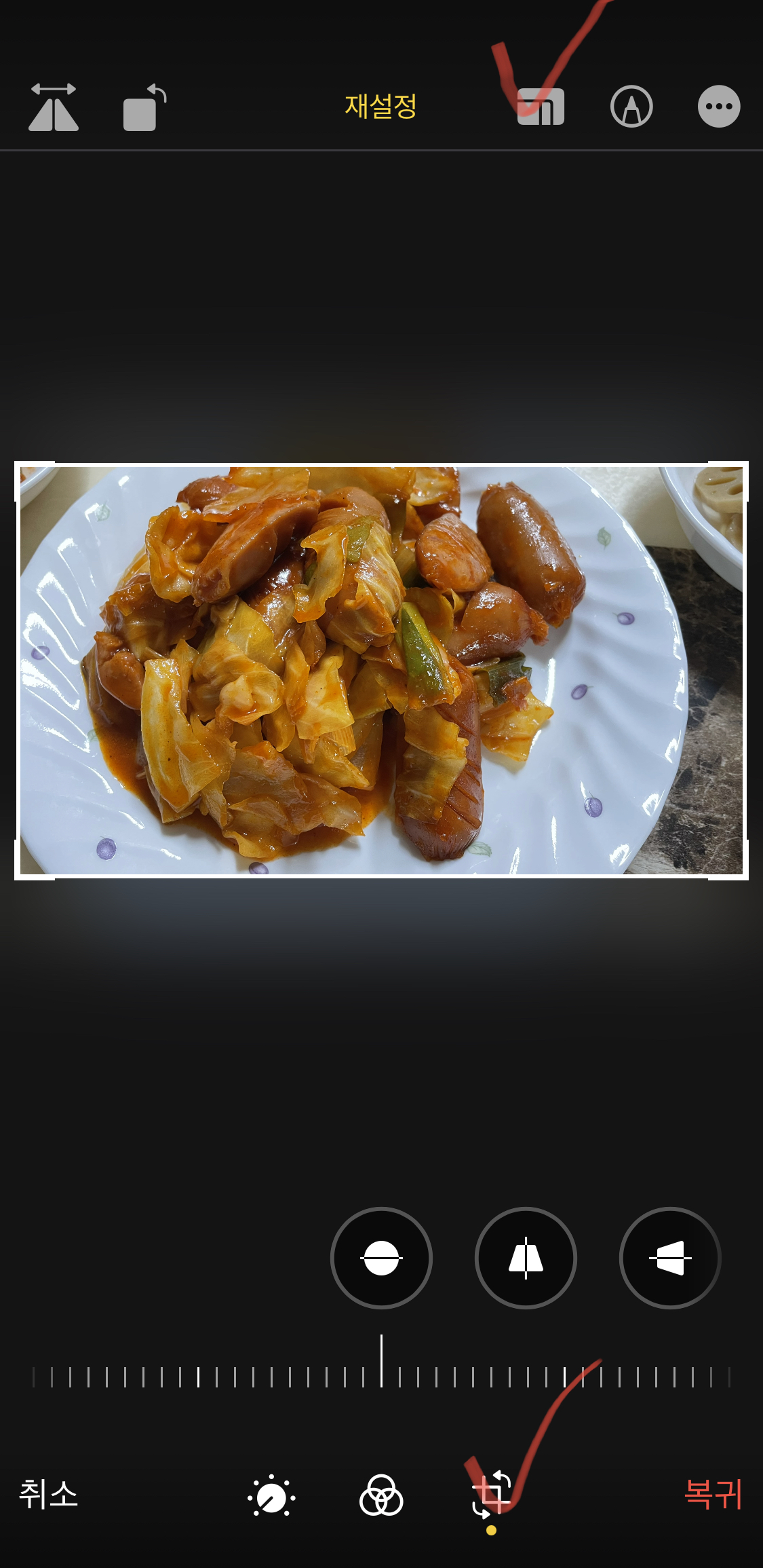 사진첩에서 사진 선택 후 편집을 누르고 사이즈 조절 메뉴로 들어가서