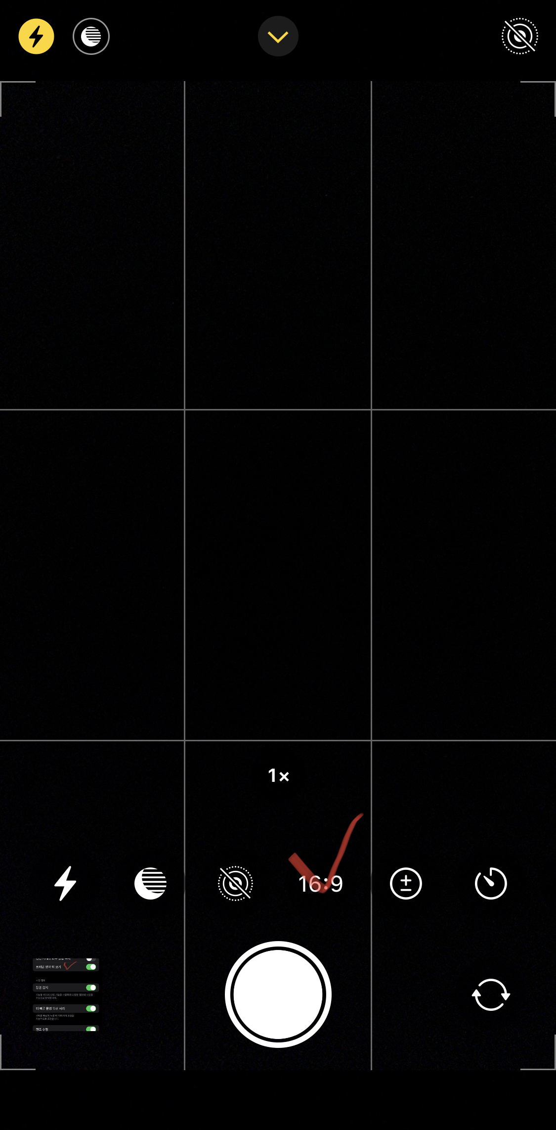 이후 카메라 앱을 실행시키면 16:9 비율로 계속 촬영할 수 있습니다.