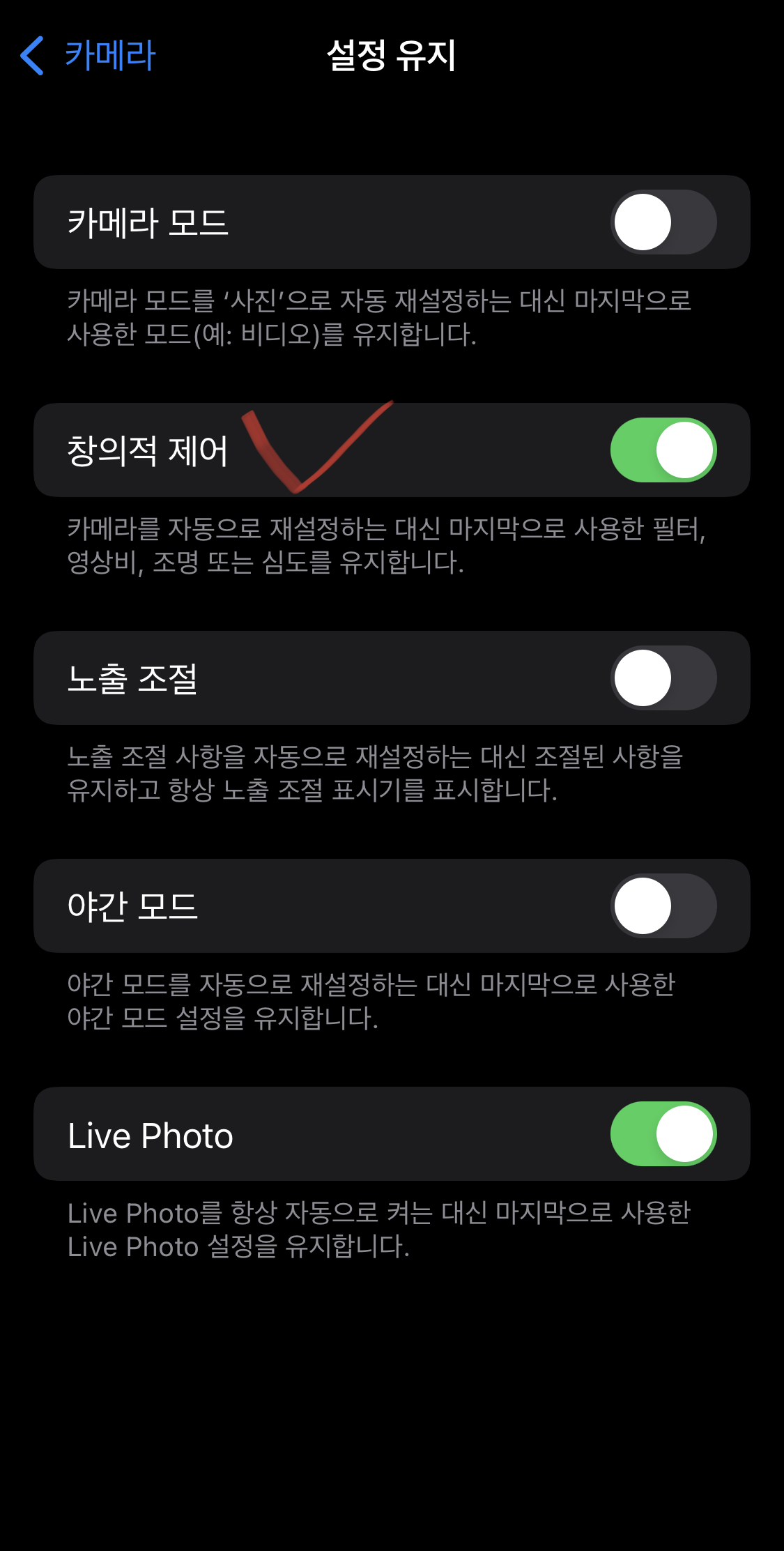 그리고 “창의적 제어” 기능을 켜 주시면 됩니다.